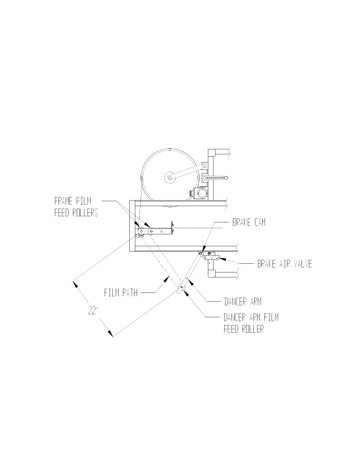 brake cam. With the dancer film feed roller set at the proper distance of 22” from the frame film feed rollers as