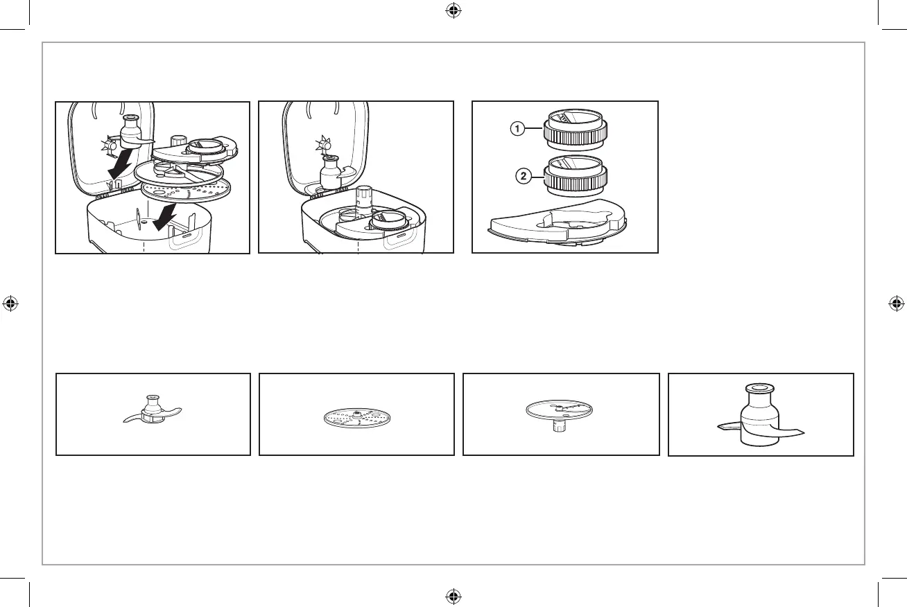 para insertar primero el disco para rallar, alineándolo los orificios para los dedos con los