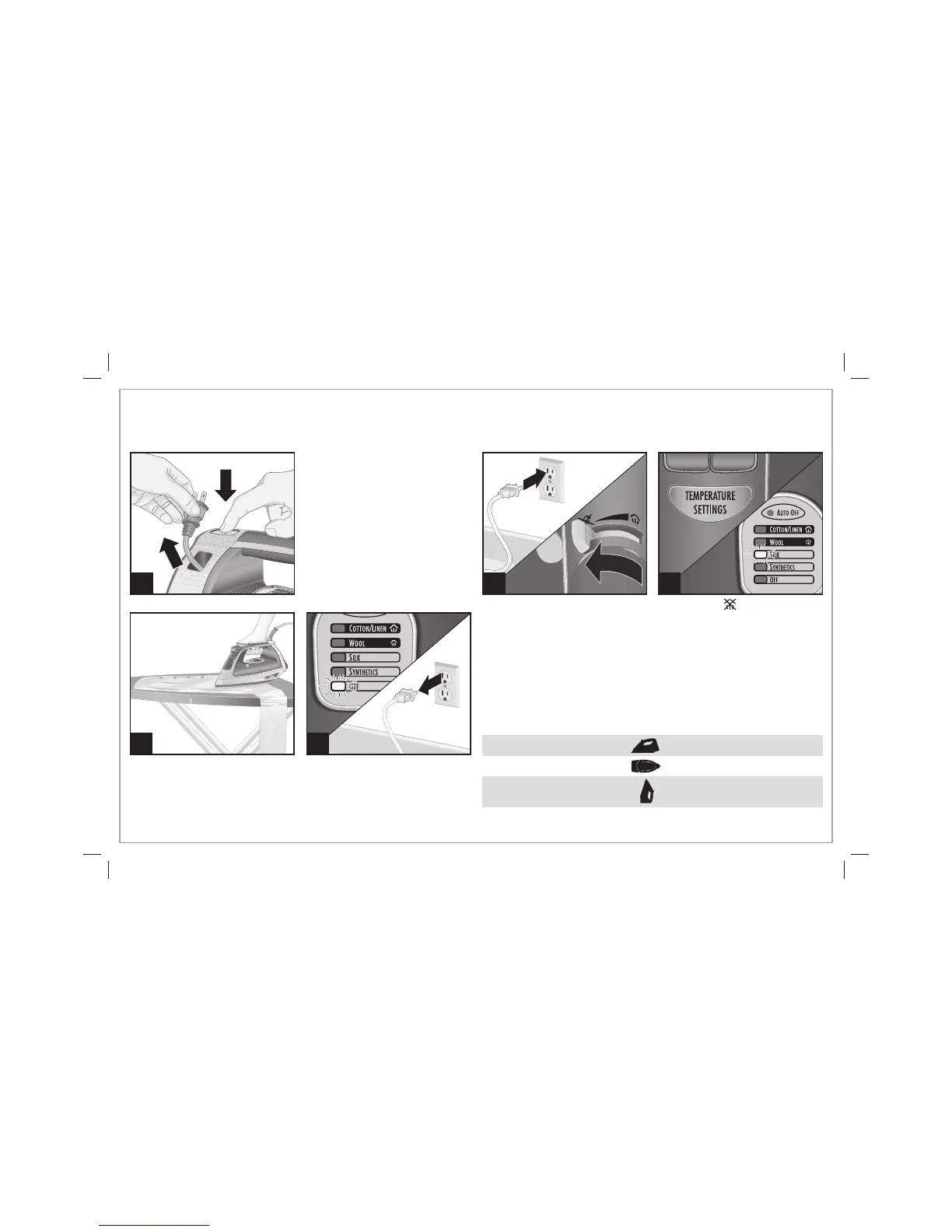 allumer le fer à repasser et maintener la pression jusqu’à ce que le