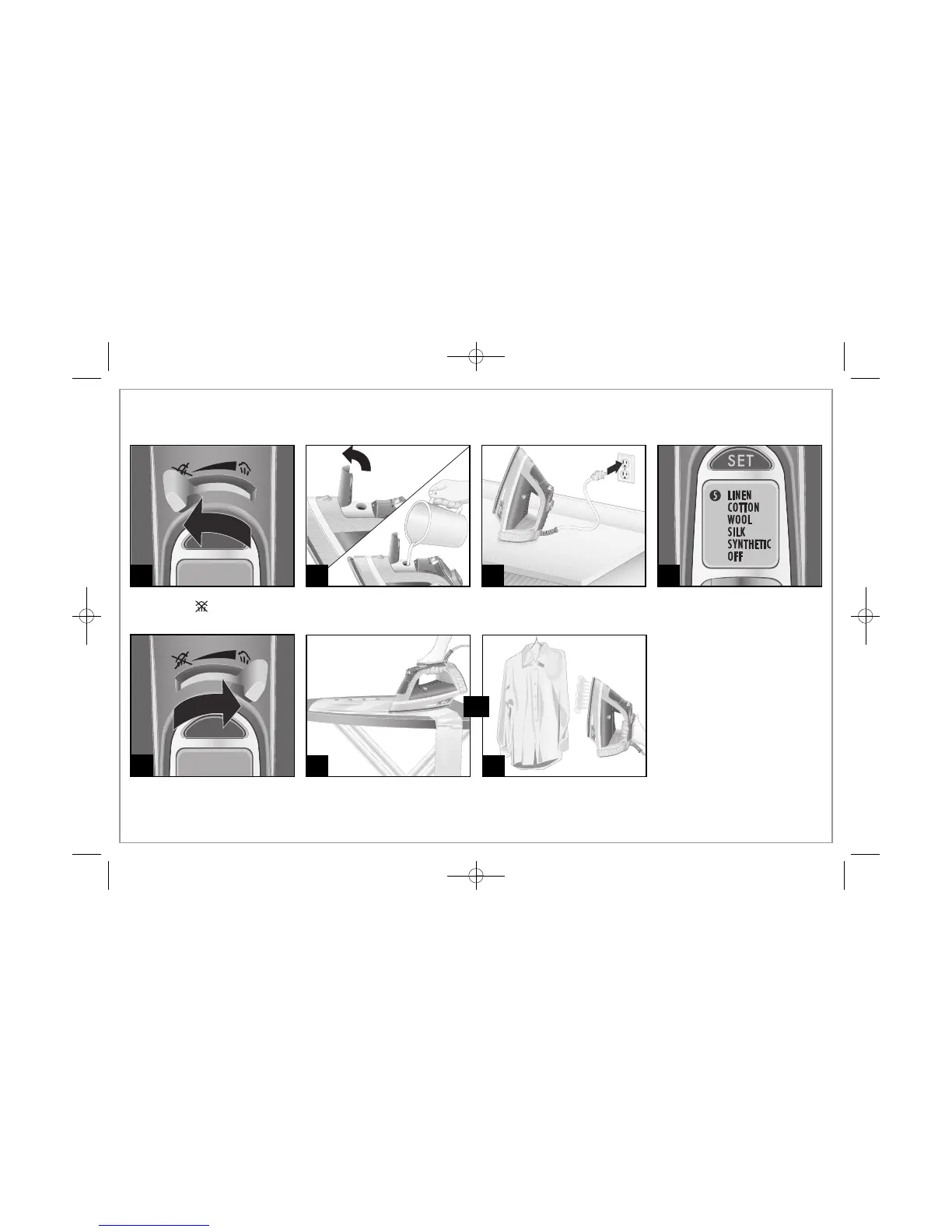 6 pulgadas (15 cm) de la prenda y no deje que la suela toque prendas