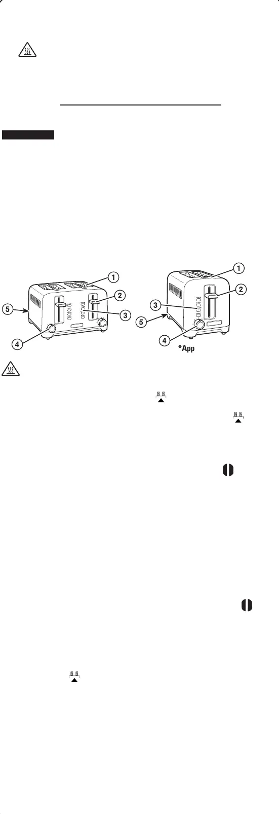 2. Éjecteur de pain/Levier d’éjection de rôties manuelle ( ) – Pousser vers le bas