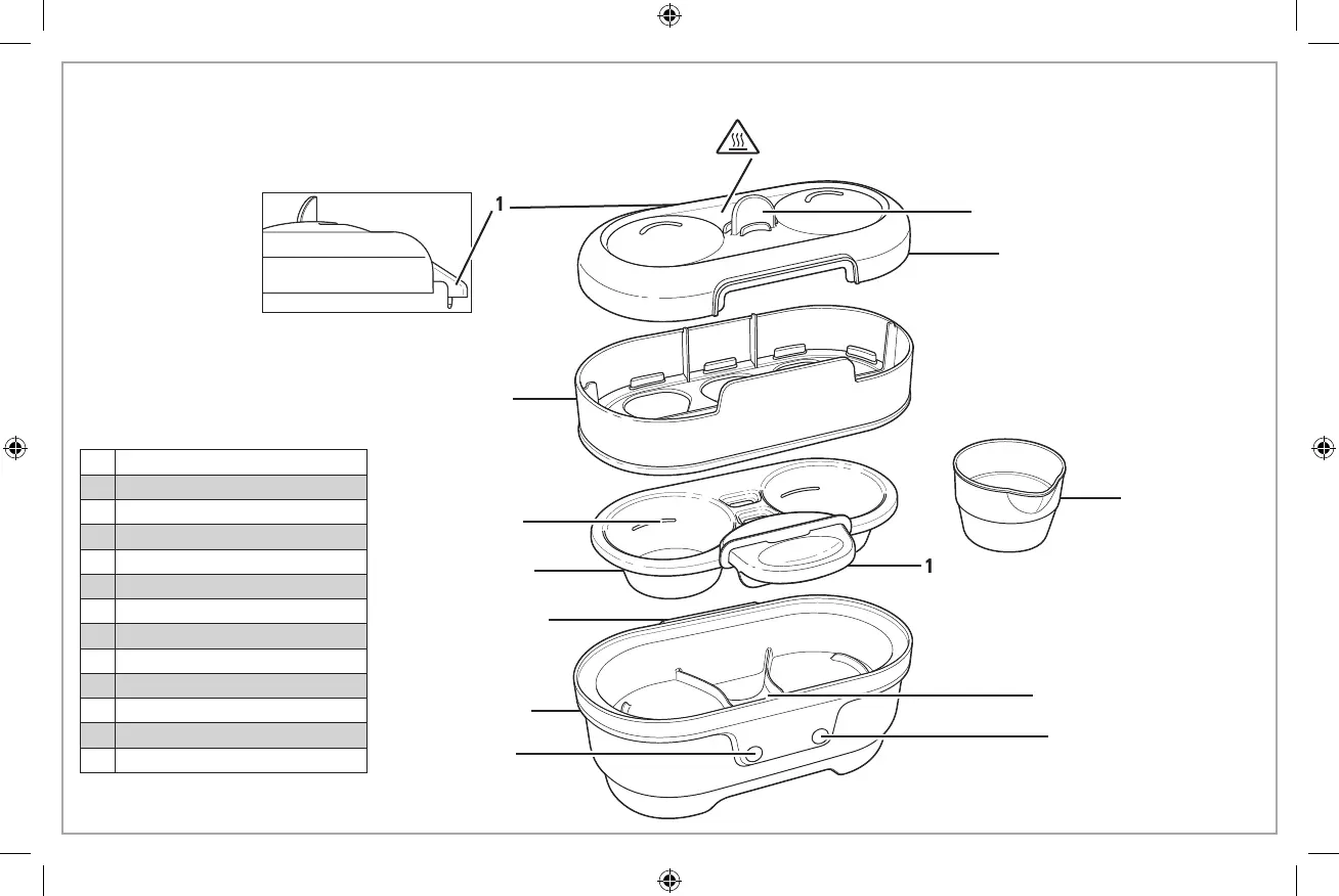 Before first use: Wash Lid, Hard-Boiled Egg Tray, Egg Tray, and Water Measuring Cup in warm,