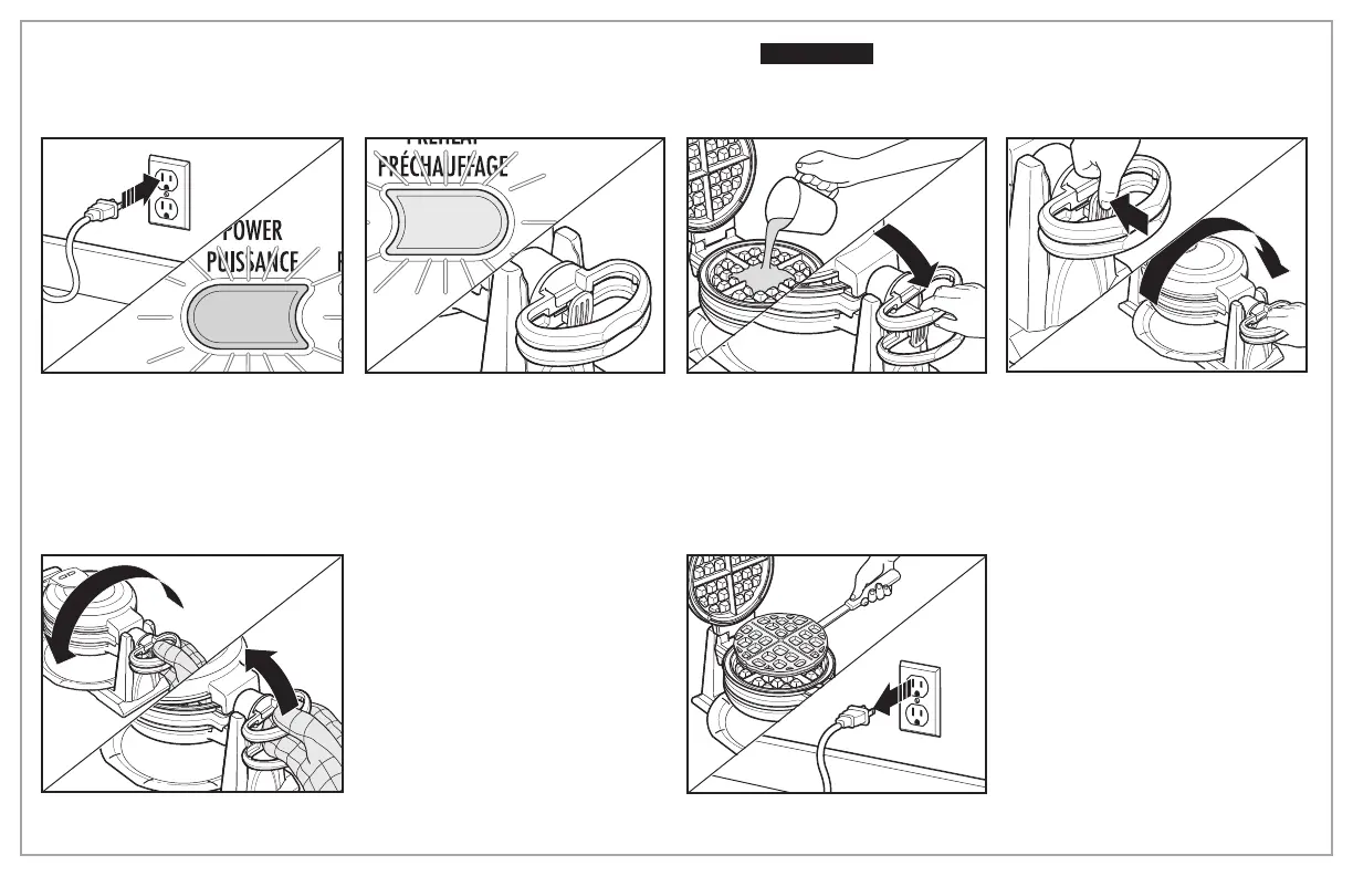 Handle clockwise to flip Waffle Maker.