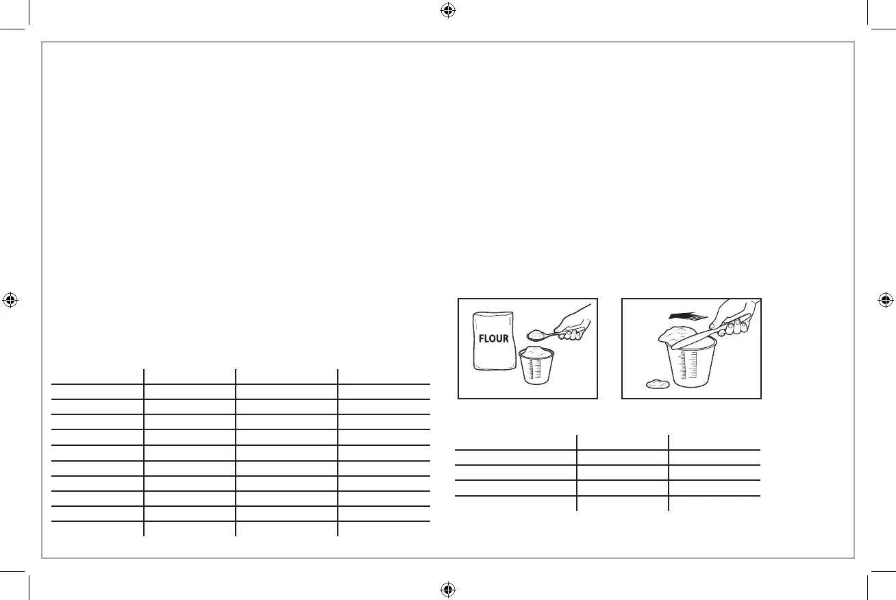 Les meilleurs résultats sont obtenus en pesant les ingrédients secs à l’aide d’une