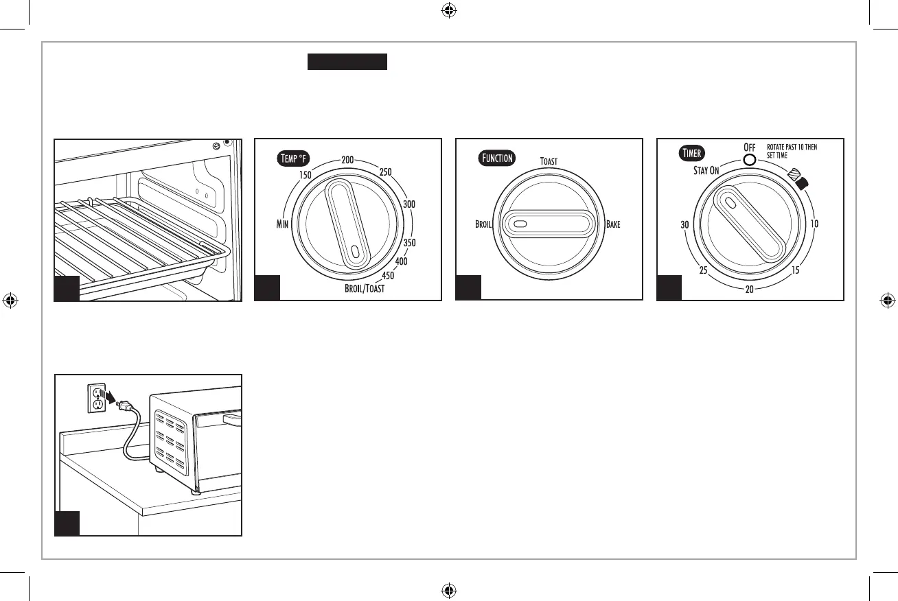 Plug into outlet. Place oven rack in oven. HIGH RACK POSITION is for