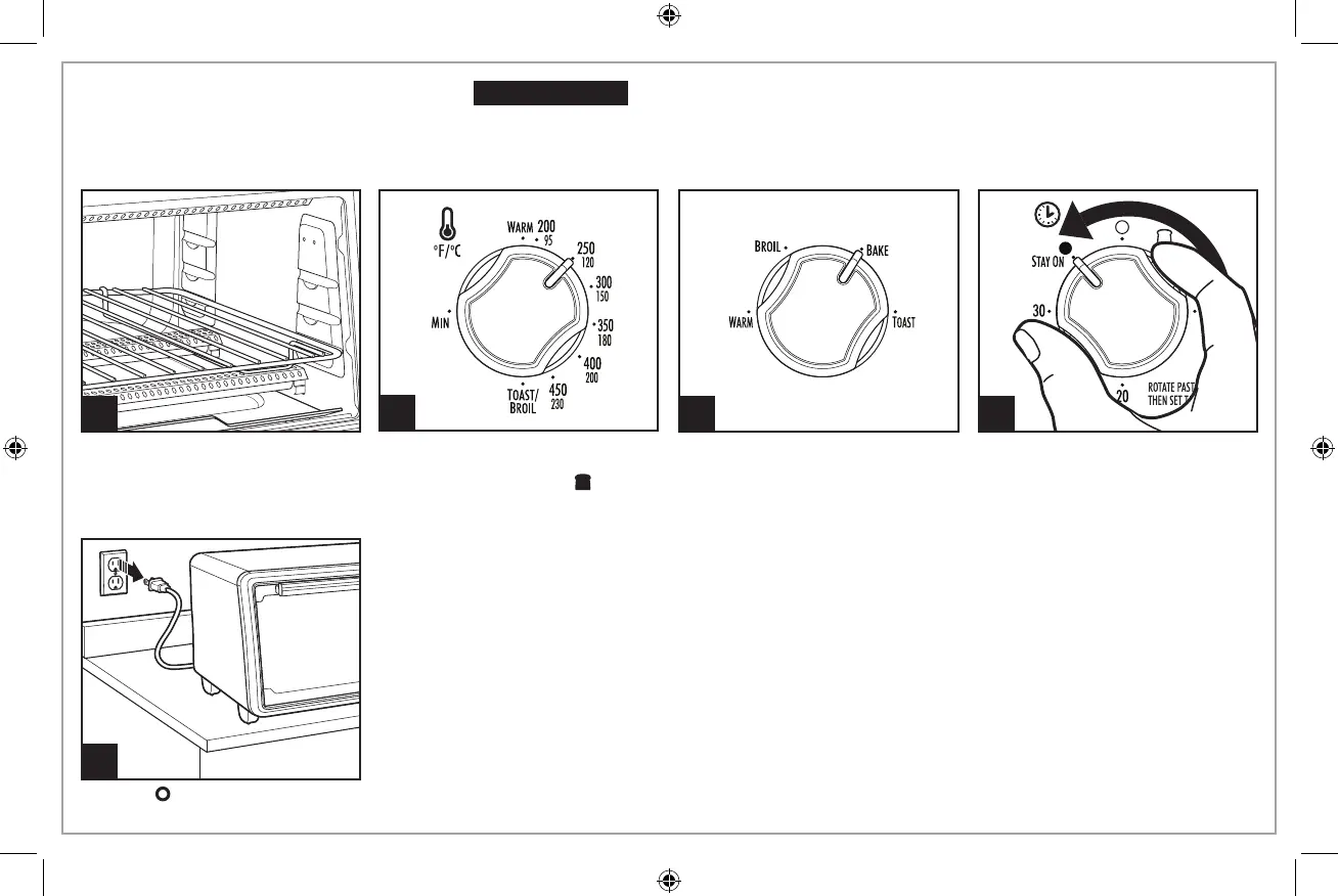 Gire el Programador de tiempo a más de 10 luego de vuelta a para precalentar el horno por 5 minutos antes de comenzar a cocinar. Después