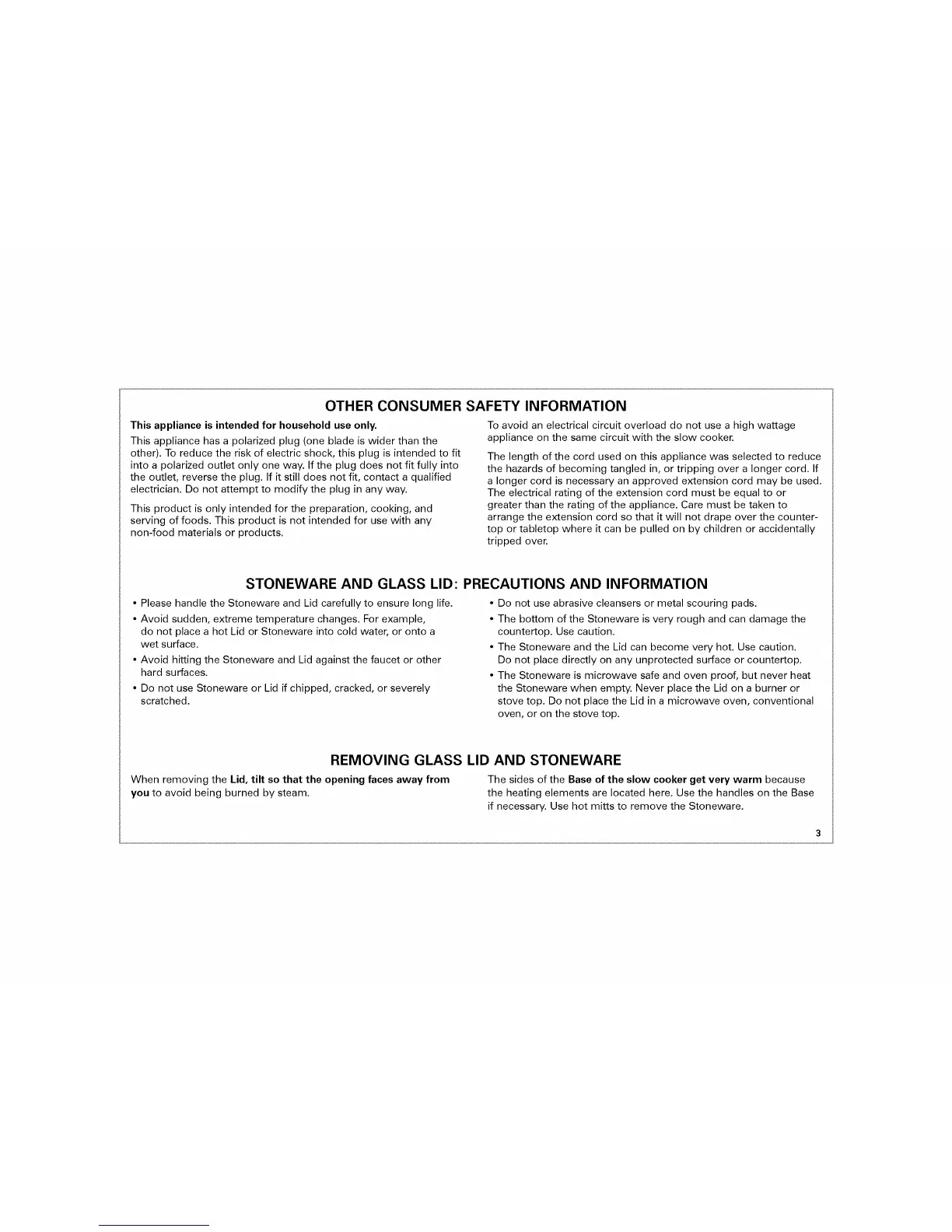 ° Please handle the Stoneware and Lid carefully to ensure long life.