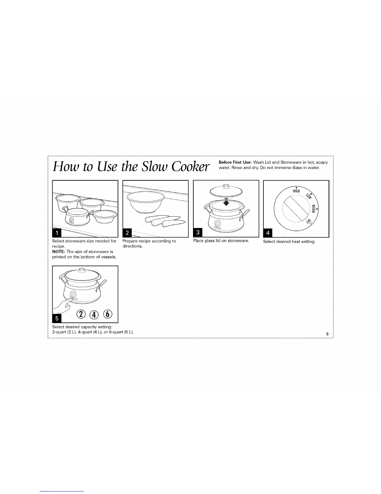 Before First Use: Wash Lid and Stoneware in hot, soapy