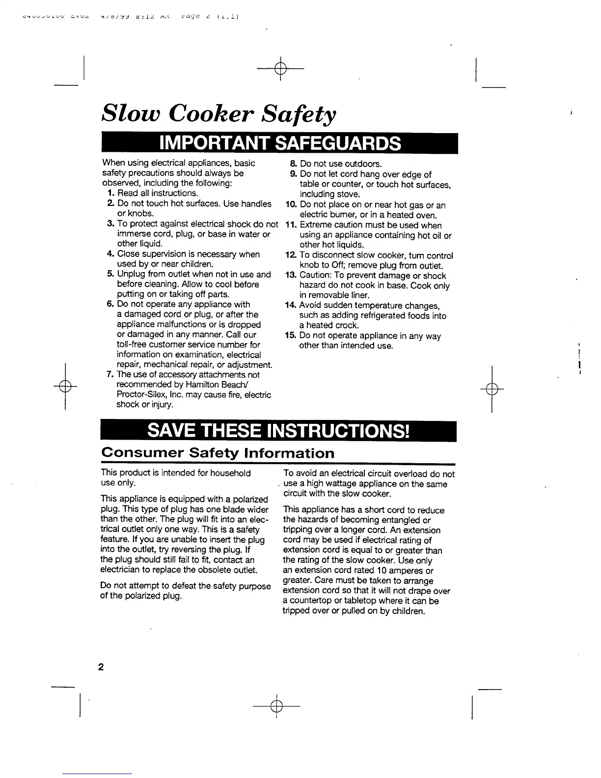Hamilton Beach 33590 - Important Safeguards; Consumer Safety Information