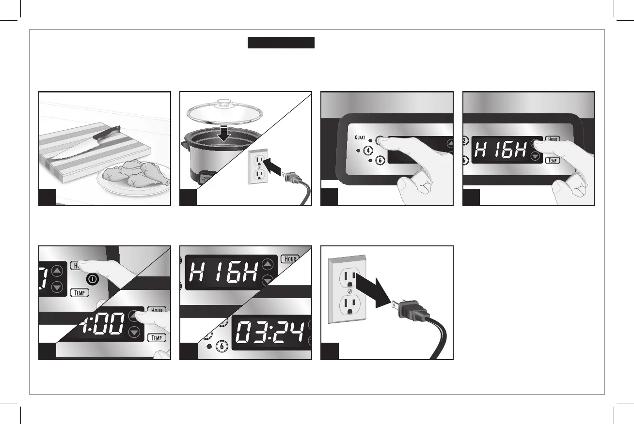 capacidad de 6 cuartos. Coloque la tapa sobre la olla de cocción. Enchufe.