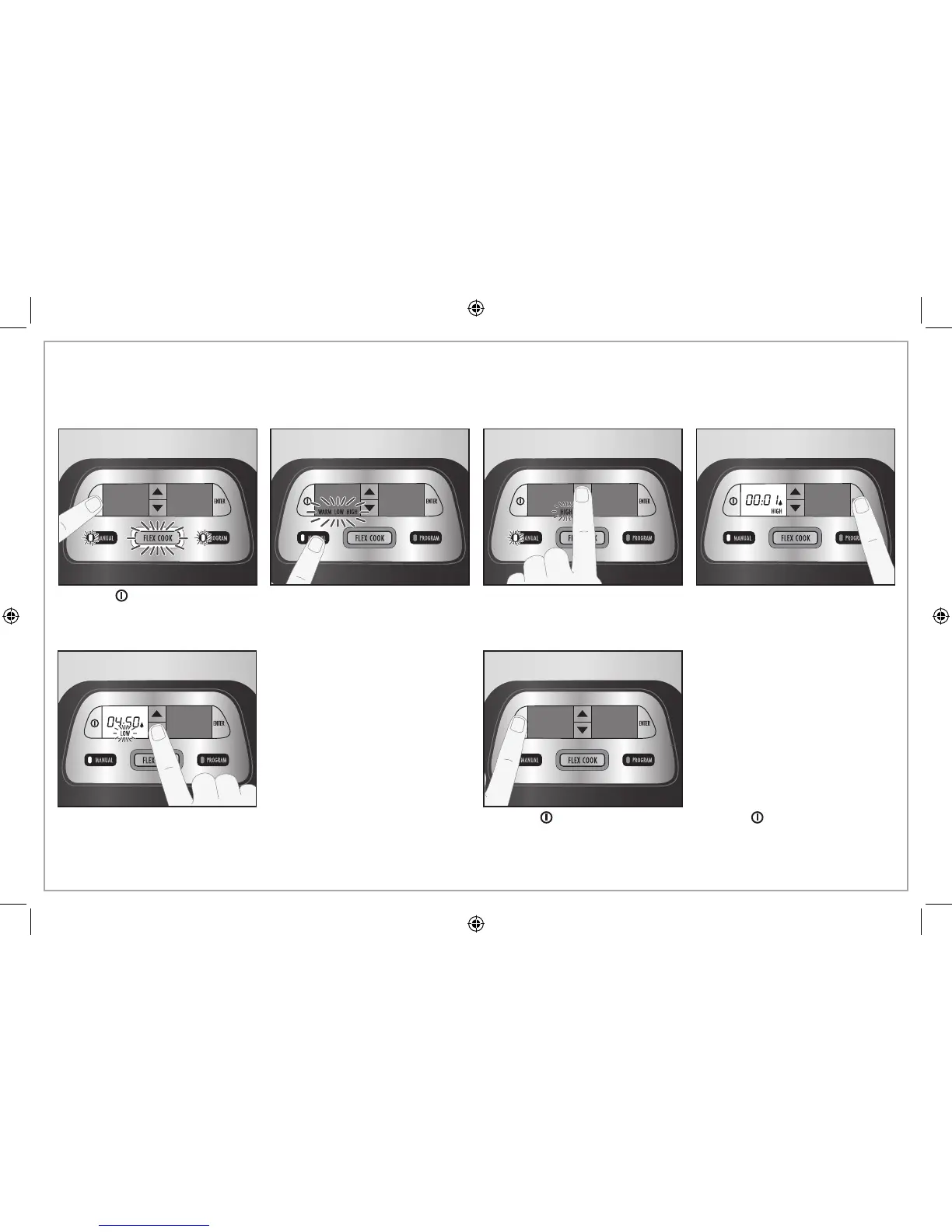 Use Manual Mode when you want to select a heat setting only. Display shows actual time cooked.