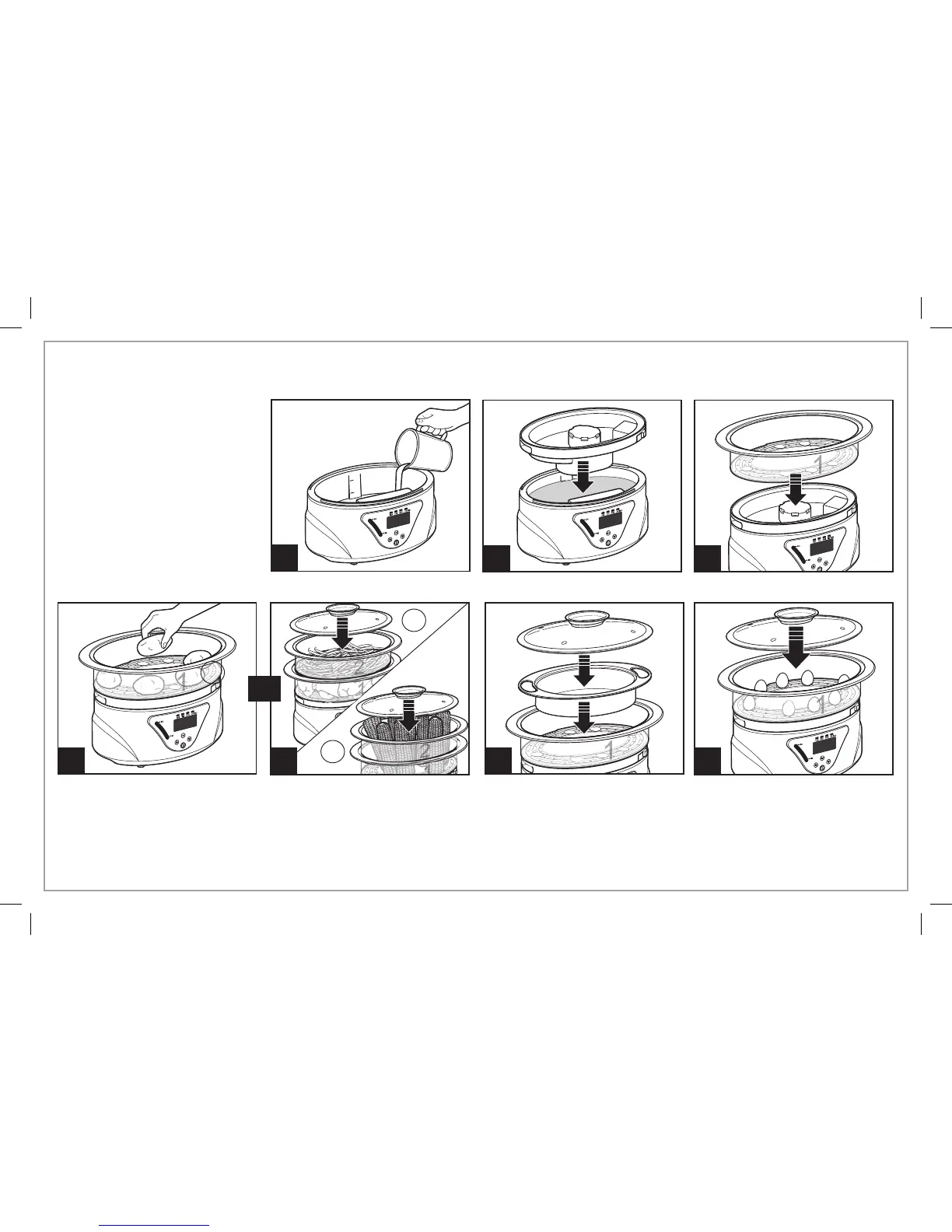 • 2 récipients à vapeur ensemble. Placer le récipient no 1 sur le base et