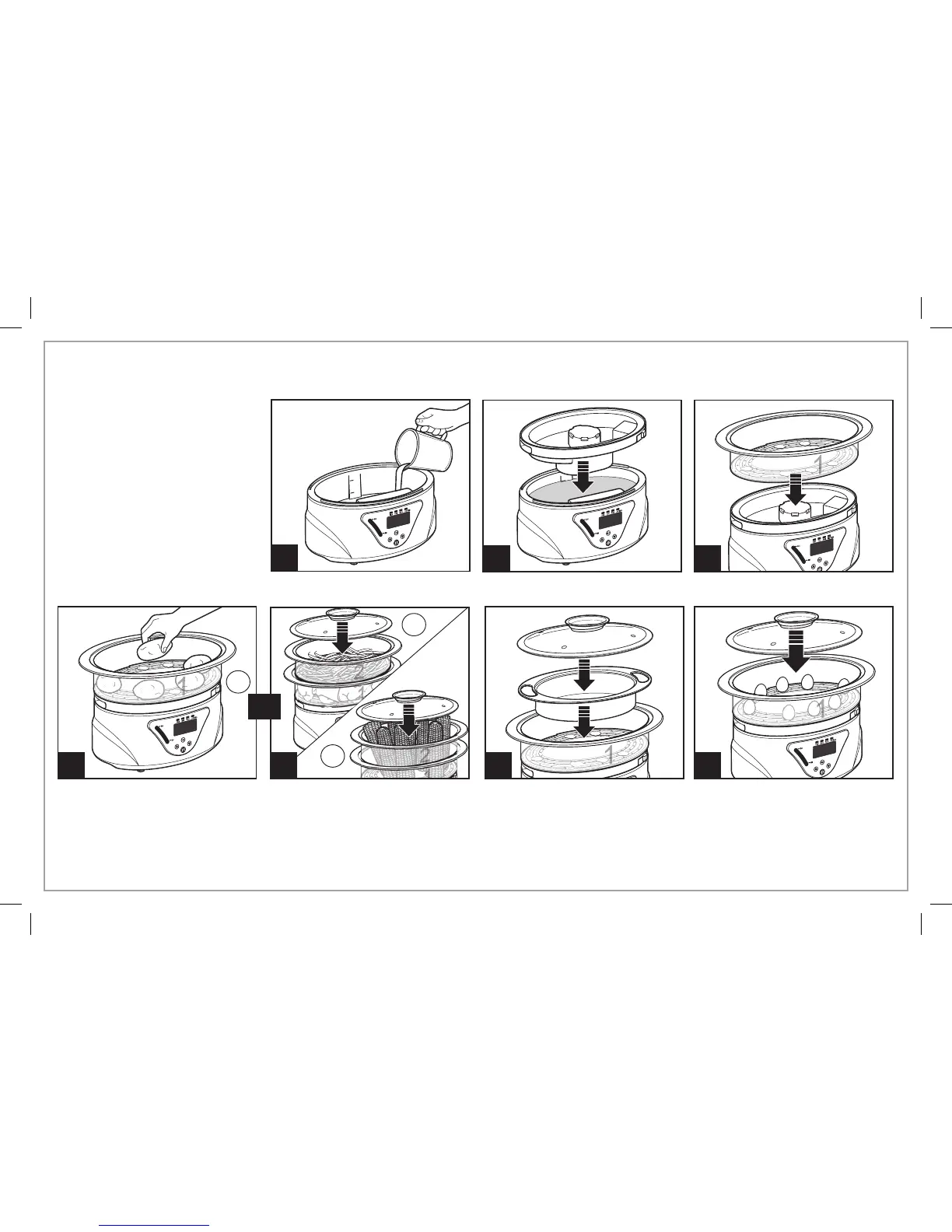 • 2 tazones de vapor juntos. Coloque el tazón 1 en la base y por encima el