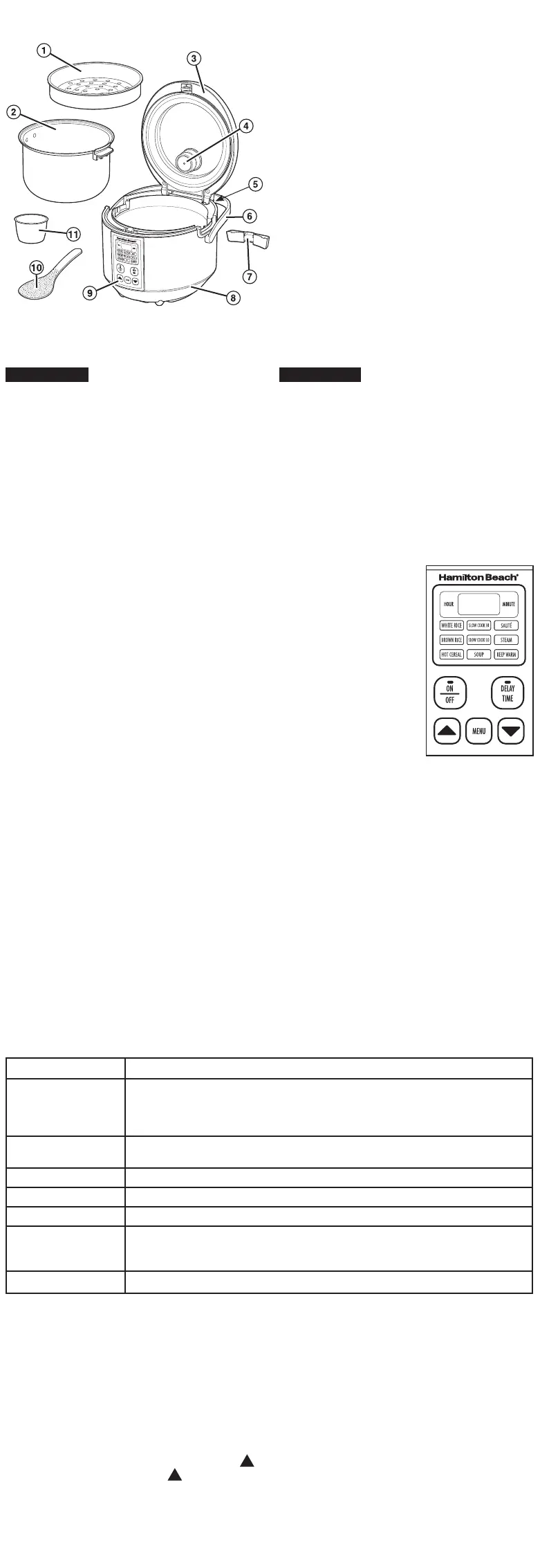 Tasse à mesurer pour le riz – Ne pas jeter la tasse à mesurer pour le riz incluse avec votre appareil.