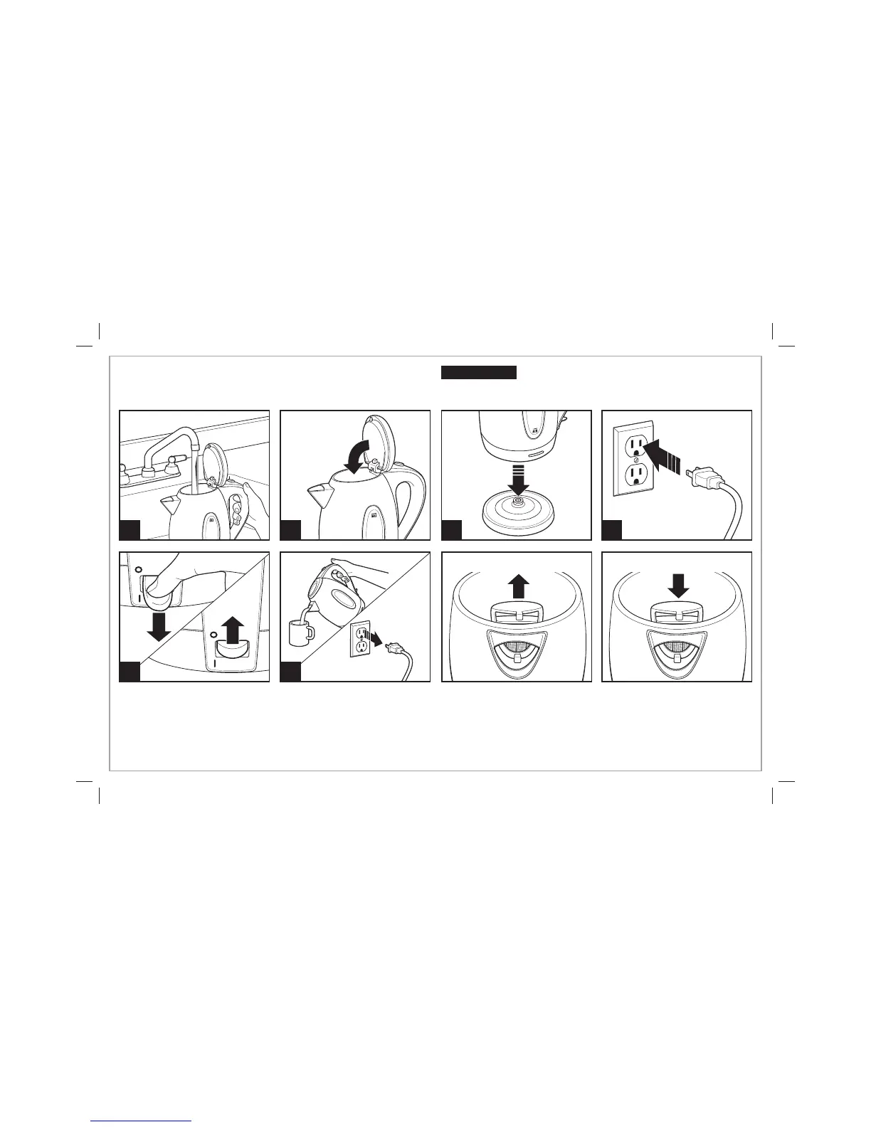 Do not overfill kettle. Boiling water may spit out of
