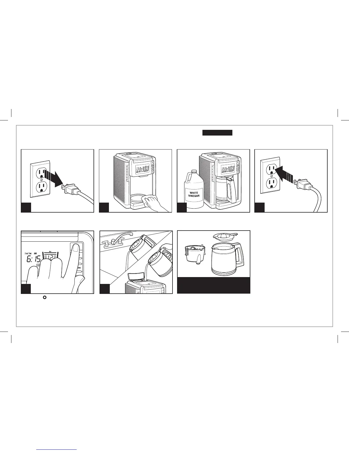 Empty carafe and rinse. Run 2–3
