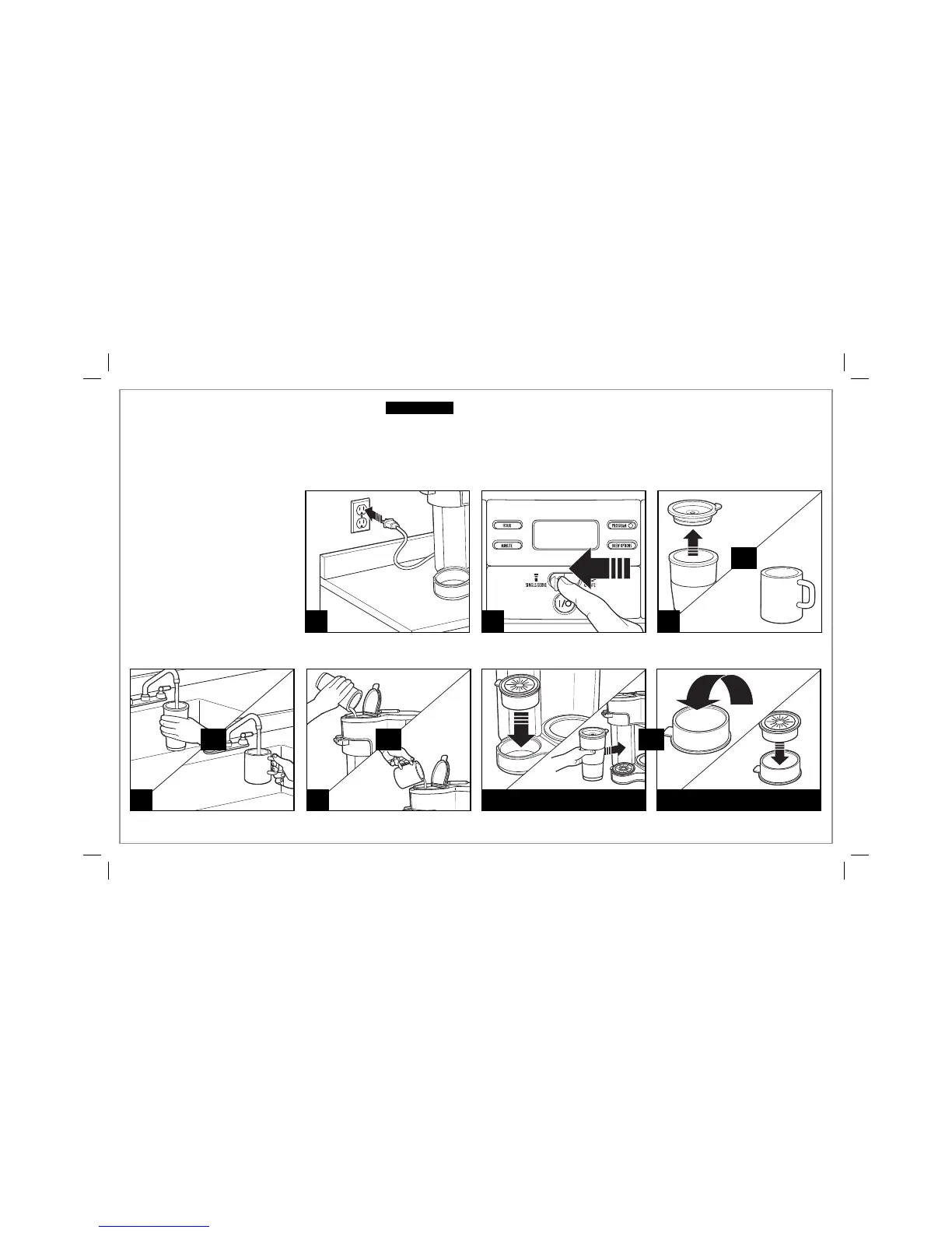 • Fill single-serve reservoir with mug or