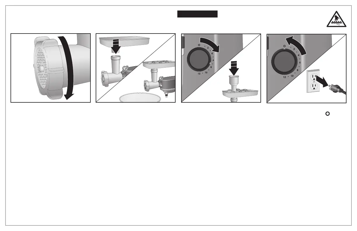 injury, never reach into grinder feed chute. Always use food