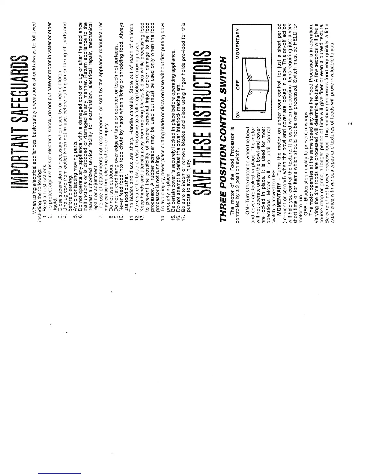 Hamilton Beach 702-7 - Important Safeguards; General Safety Precautions; Control Switch Operation