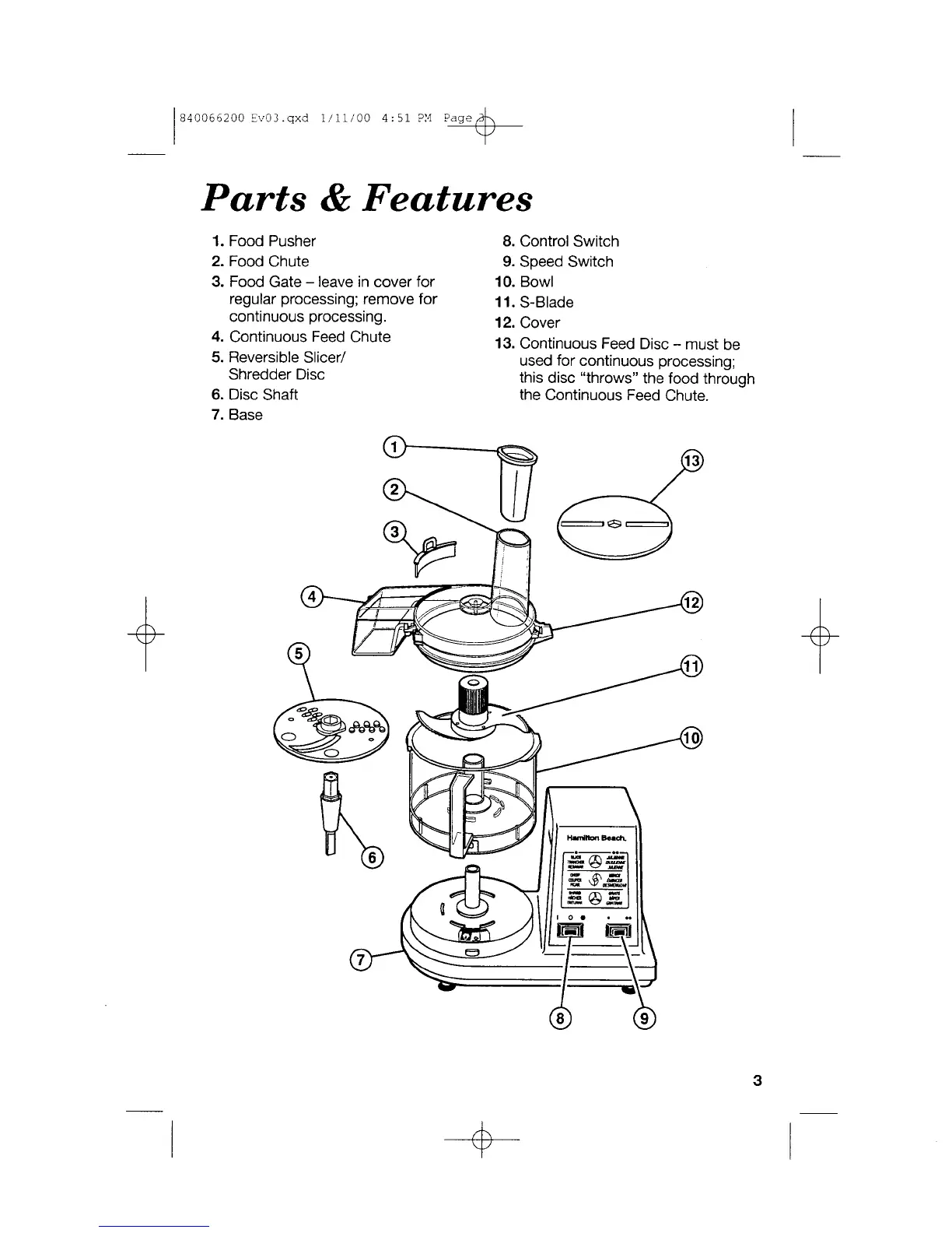 Hamilton Beach 70300 - Parts and Features; Product View