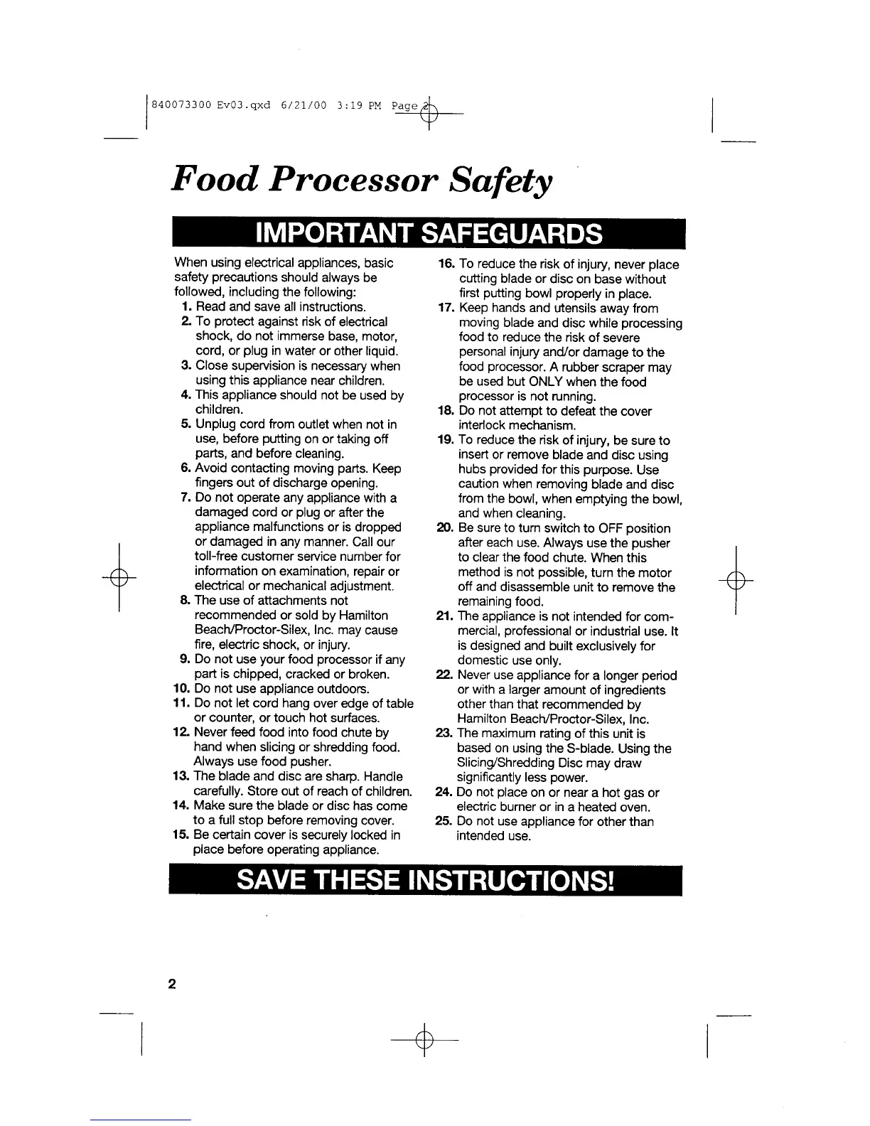 Hamilton Beach 70650 - Food Processor Safety