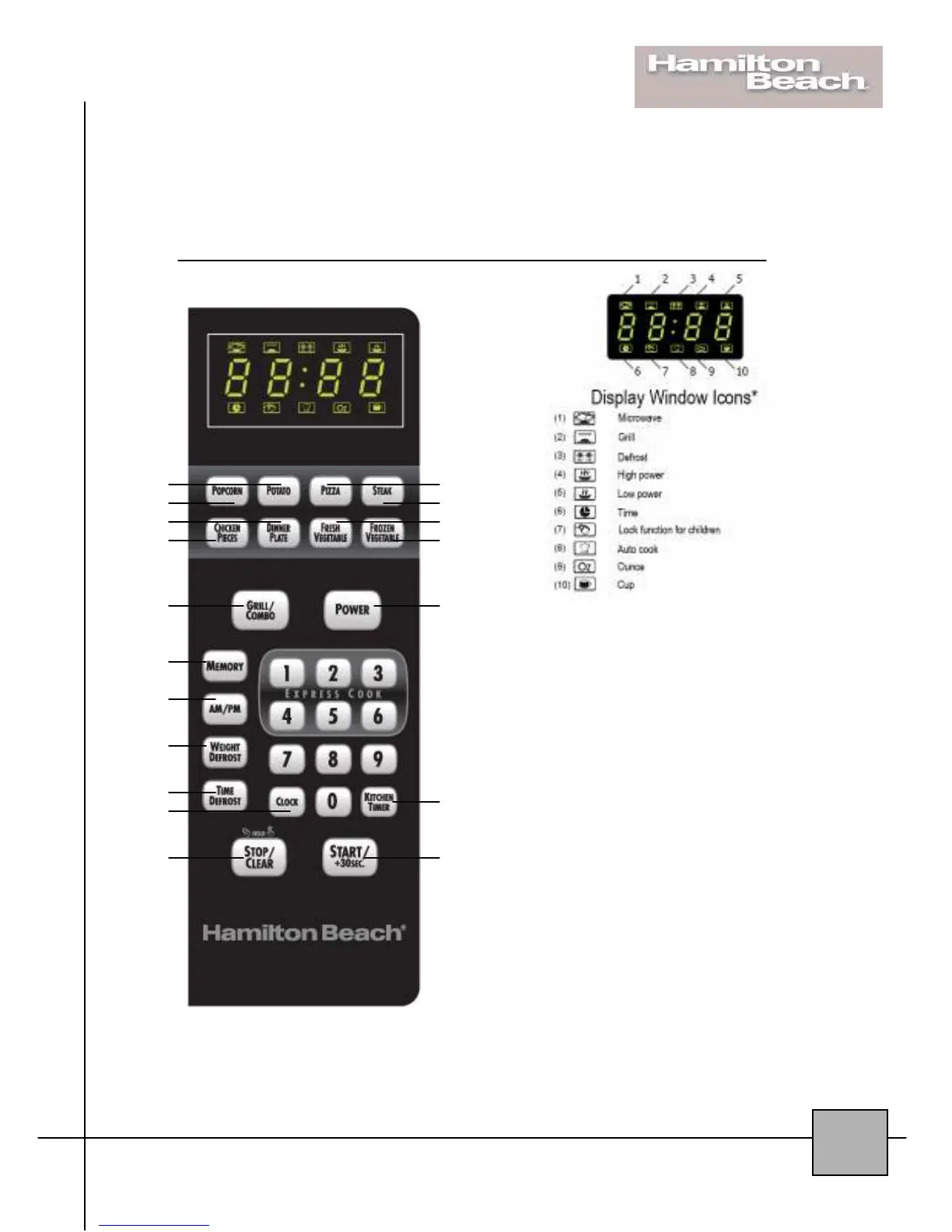 Hamilton Beach 87176 - Control Panel Operation; Display Window