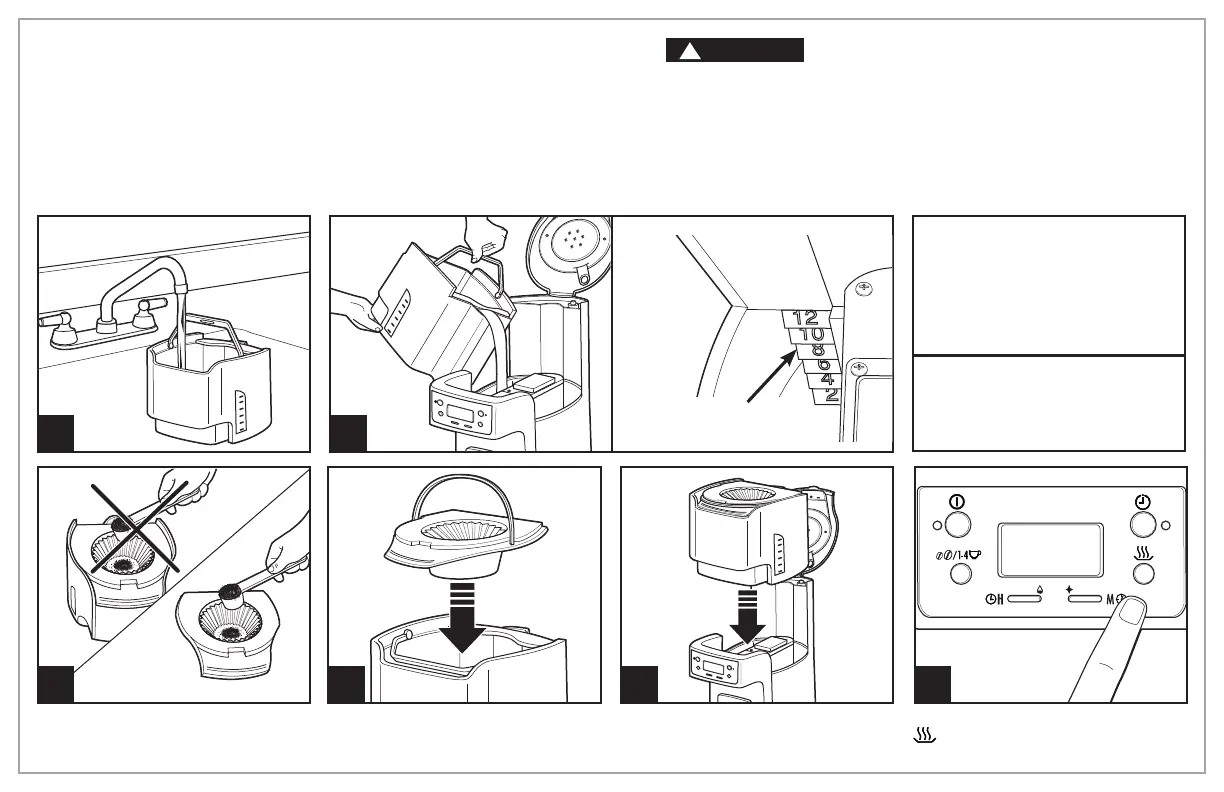 • Kendali bekas kopi hanya apabila mengandungi air sejuk untuk