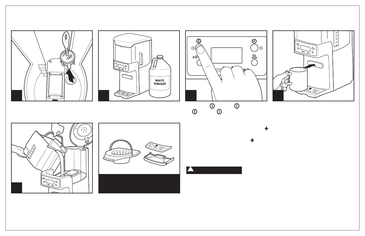 Intérieur de la cafetière : Suivez les étapes de 1 à 5 de « Nettoyage au vinaigre ».
