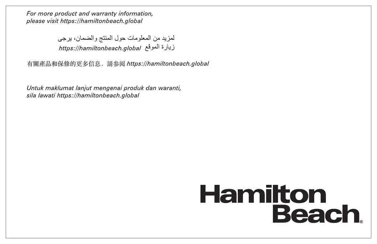 © 2019 Hamilton Beach Brands, Inc. 4421 Waterfront Drive Glen Allen, VA 23060