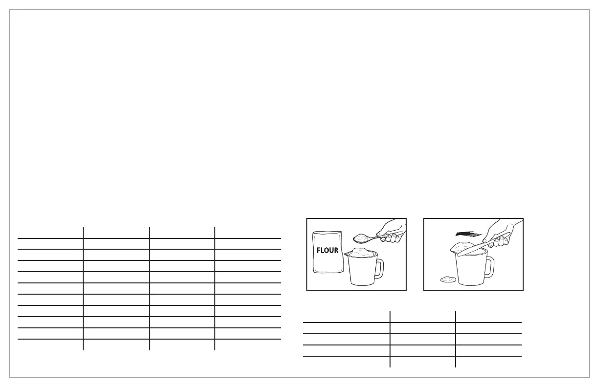 la jarra medidora y luego nivelándolos con un cuchillo. Nunca utilice la