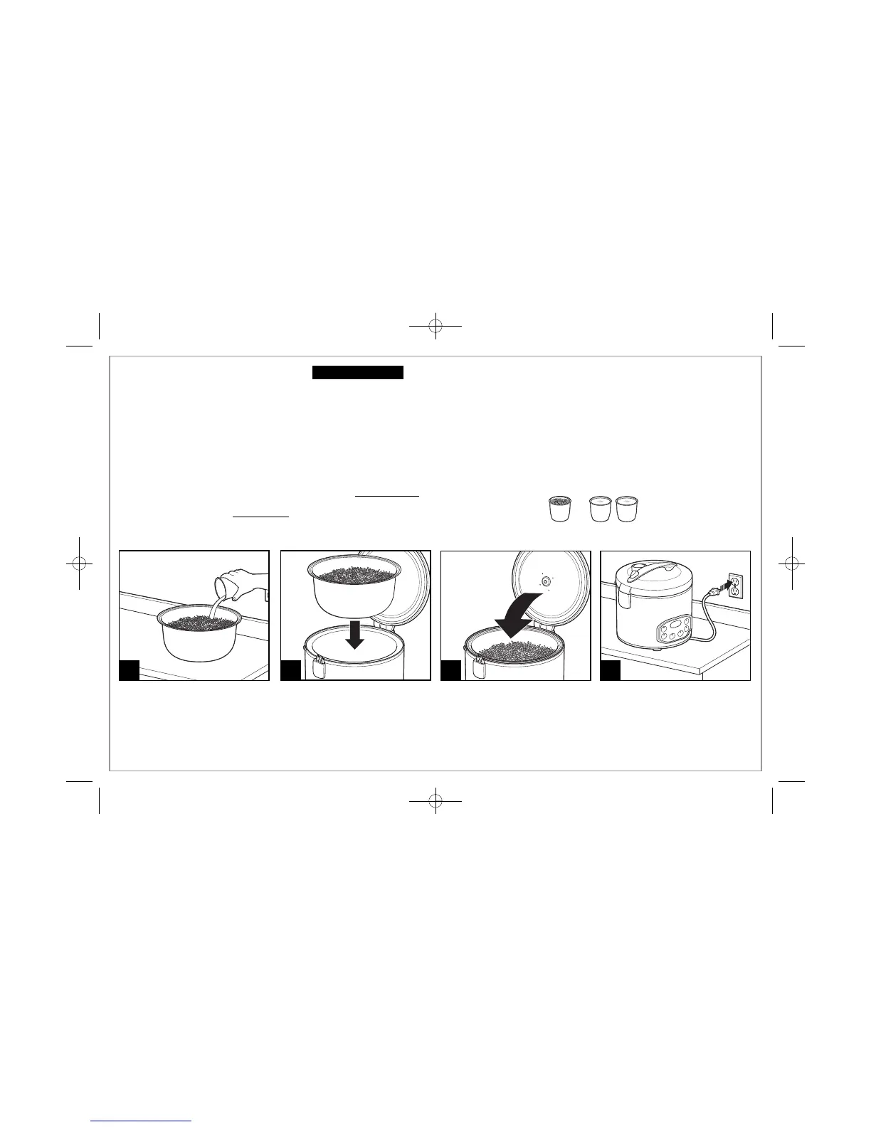 1. Ne pas jeter le mesureur en plastique pour le riz qui accompagne votre appareil.