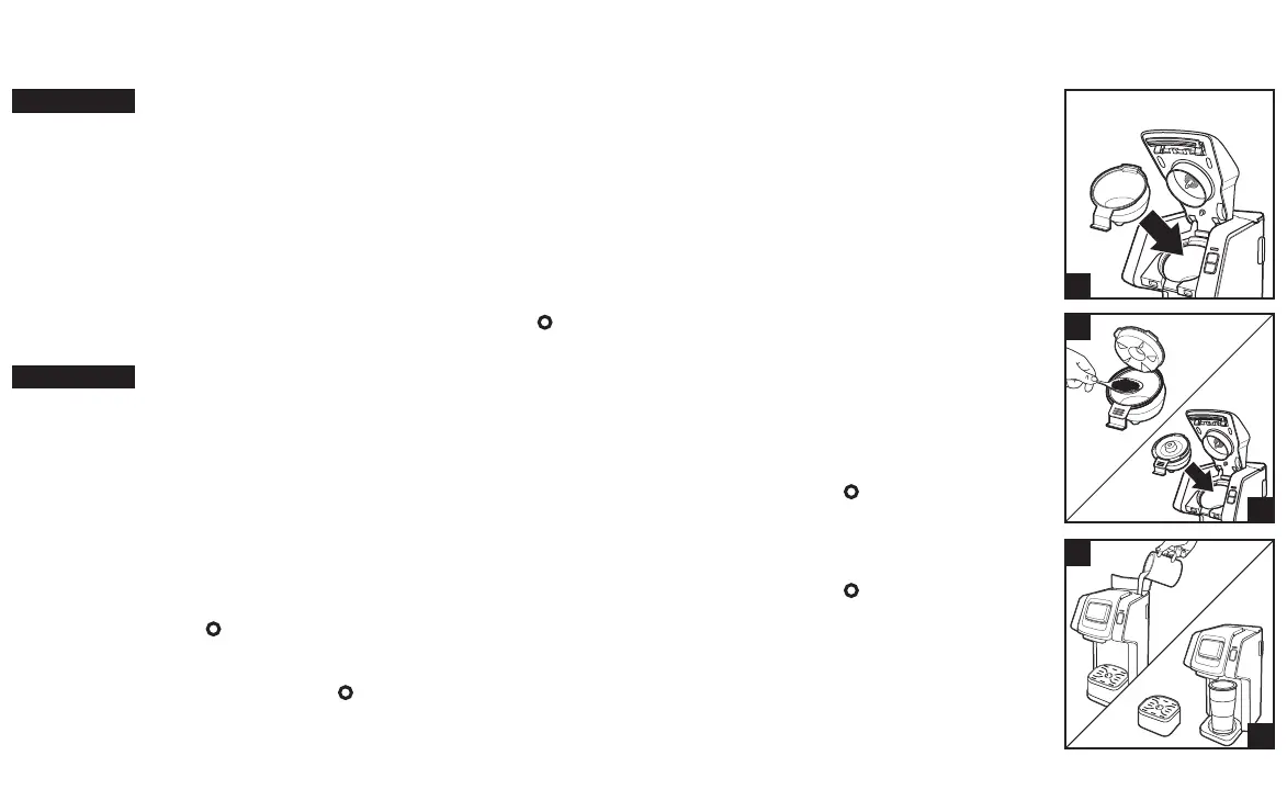 • Remove single-serve pack holder before adding coffee grounds to brew