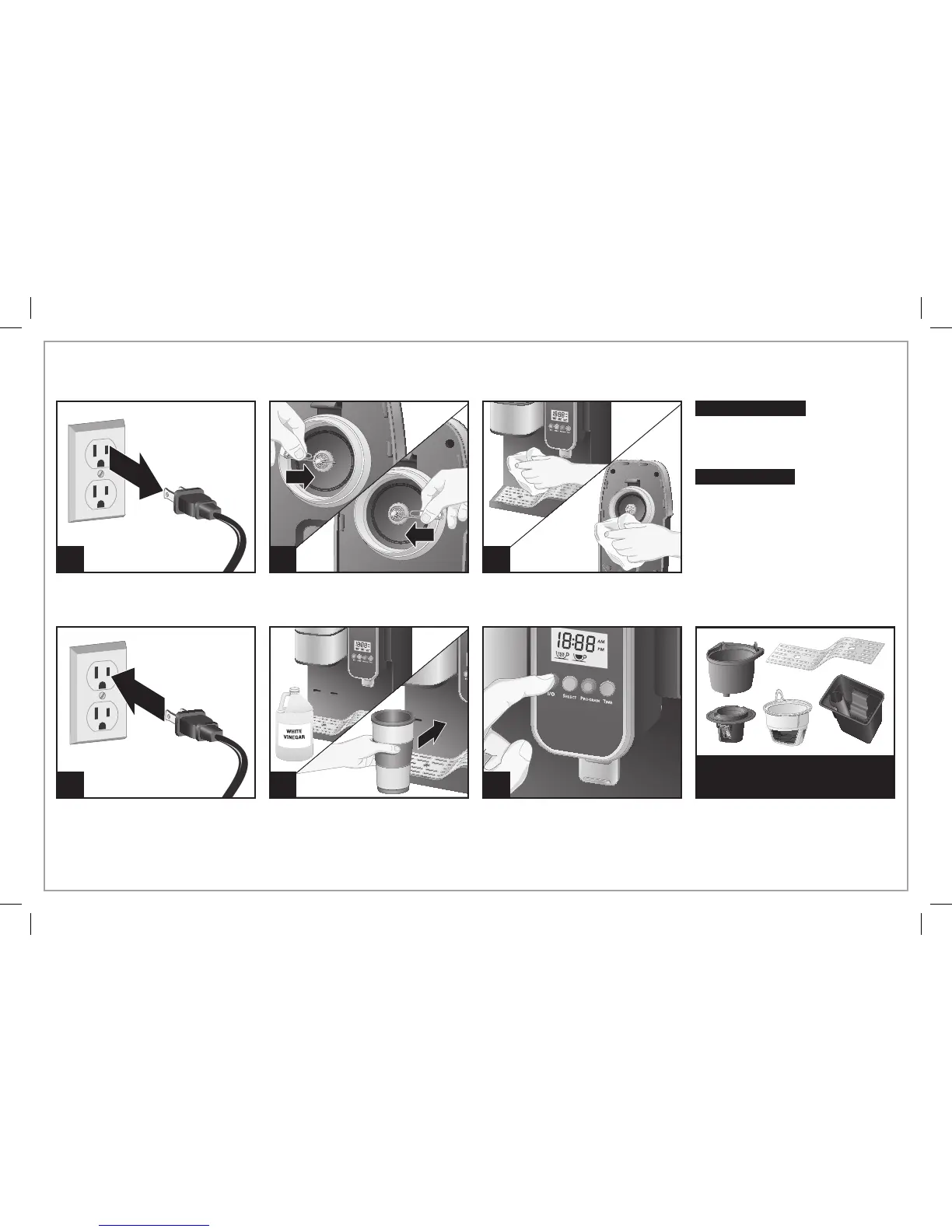 segundos, desenchufe la unidad y deje que el vinagre realice la limpieza. Después de 30 minutos, enchufe la unidad. Presione el botón I/O