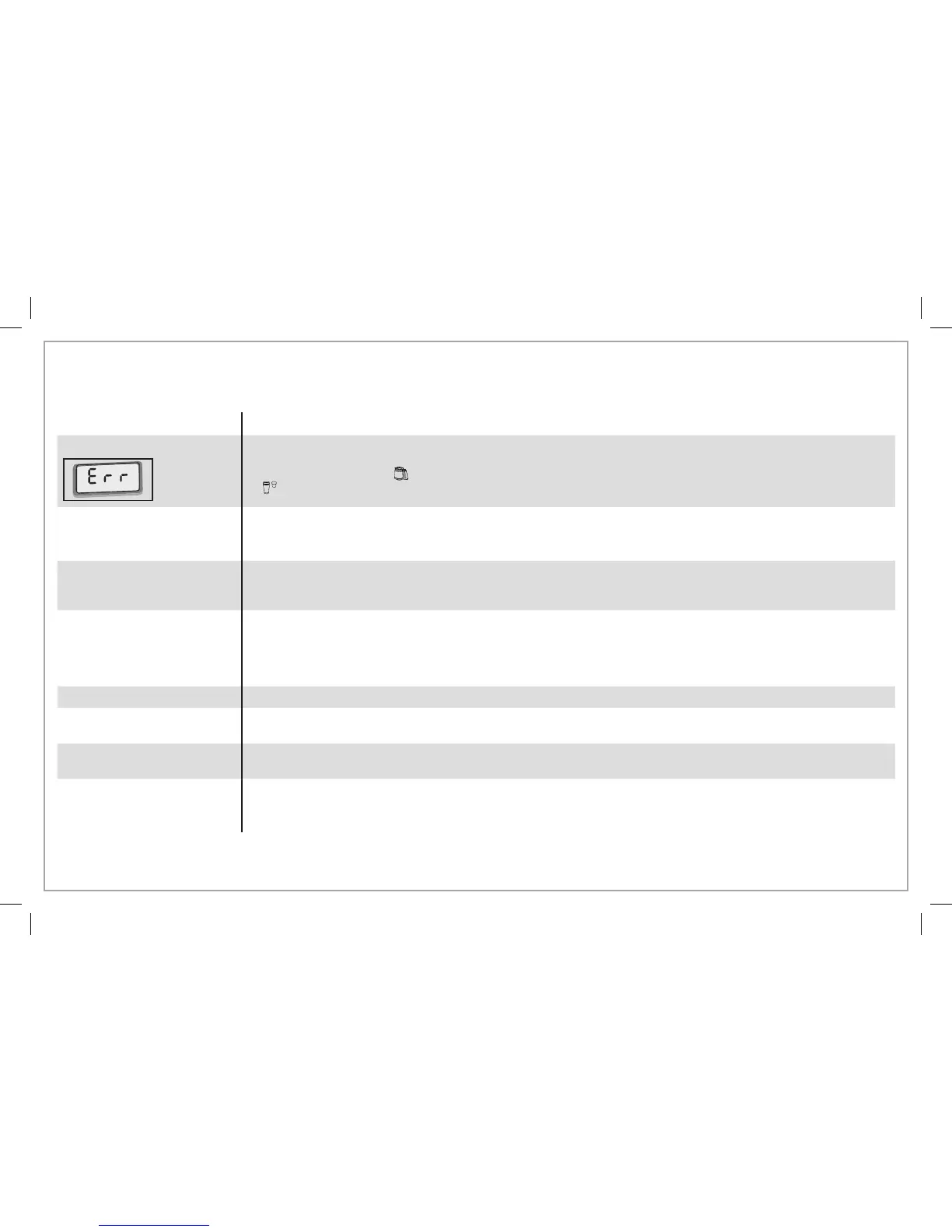 much water causes ERR message and long beep. SOLUTION: Place carafe on warming plate. Turn brew