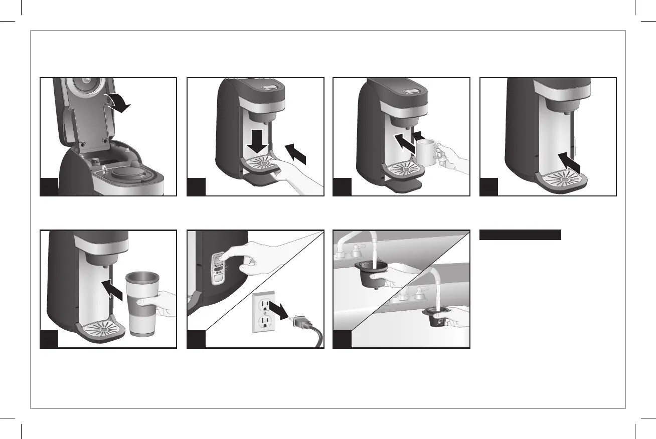 repose-tasse : Glisser le plateau dans les ouvertures à la position désirée et enfoncer pour bloquer en place. Utiliser la position la plus basse