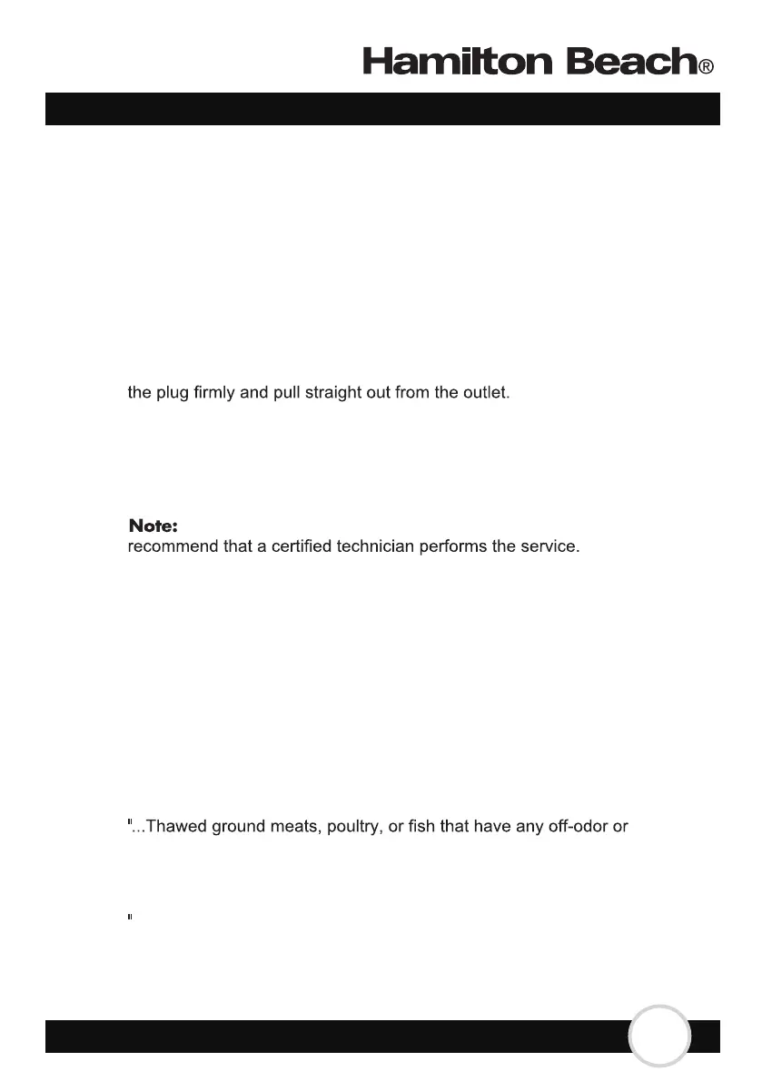 3. Never unplug your freezer by pulling on the power cord. Always grasp