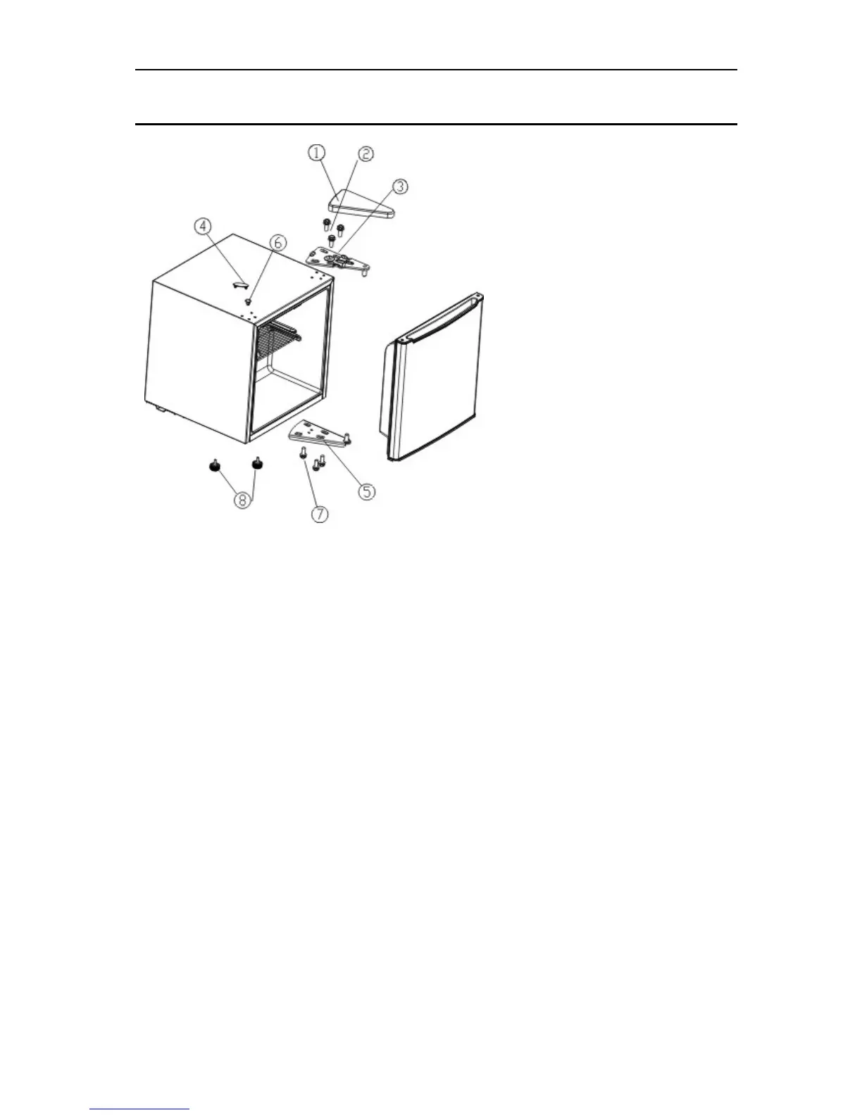 6. Install the bottom hinge on the other side of the leveling legs with 3