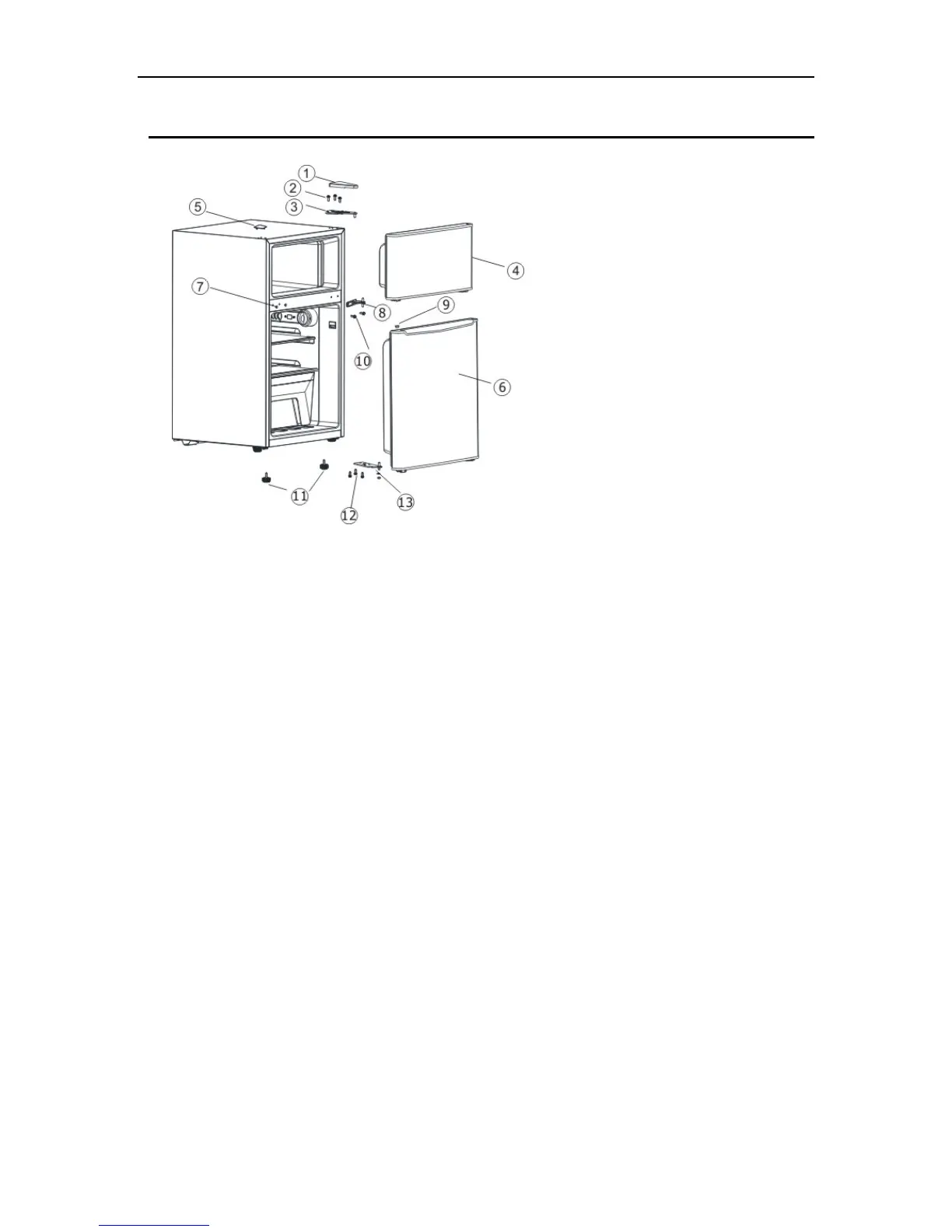 12. Install freezer door and fix the top hinge with 3 top hinge screws and fix the