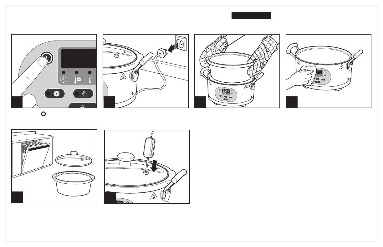 • Periuk dan Penutup Kaca boleh menjadi sangat panas. Berhati-hati. Jangan letakkan