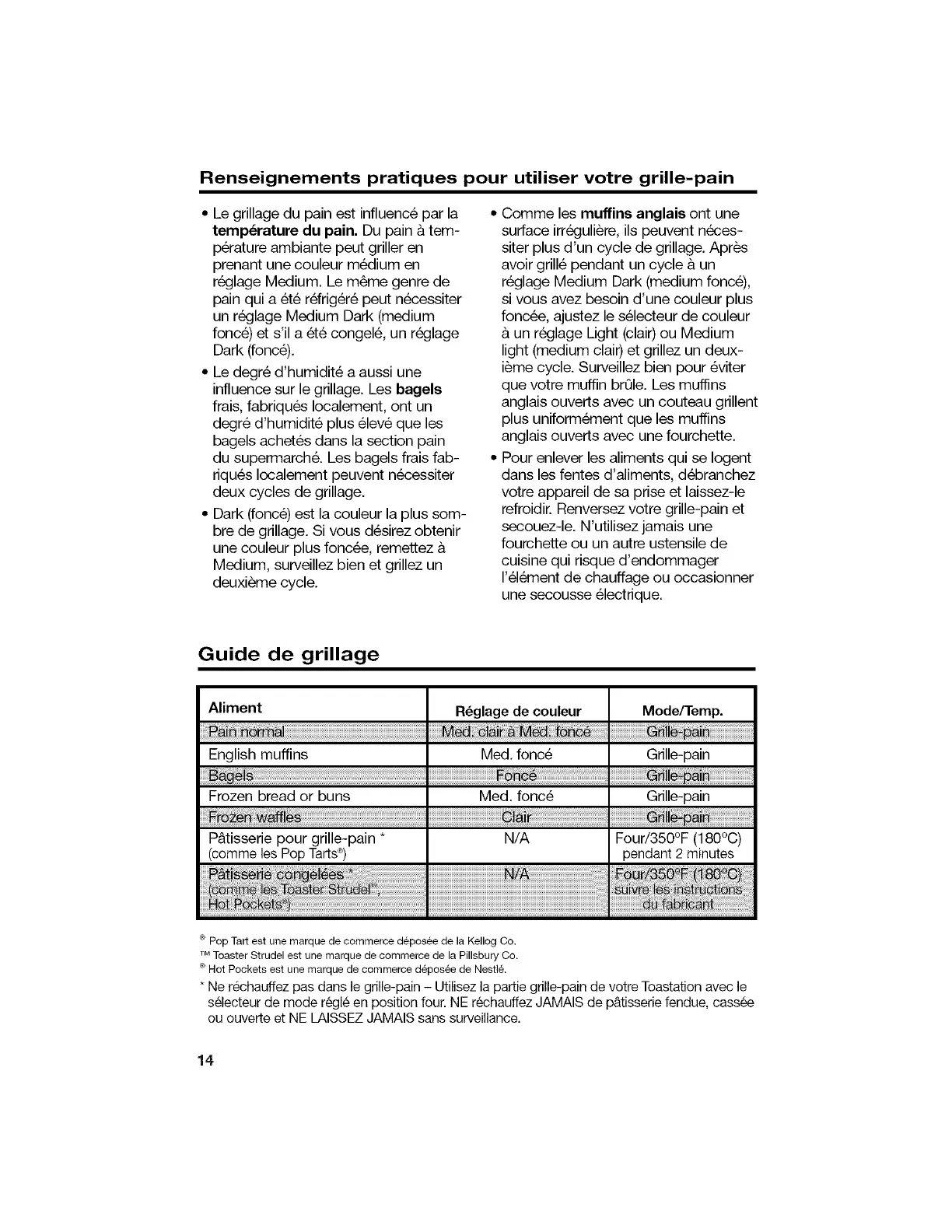 P&tisserie pour grille-pain * N/A Four/350°F (180°C)