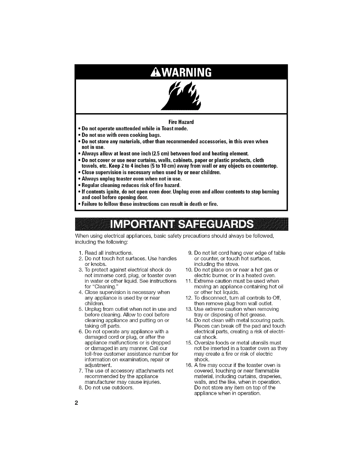 * Always allow at least one inch (2.5cm) between food and heating element.