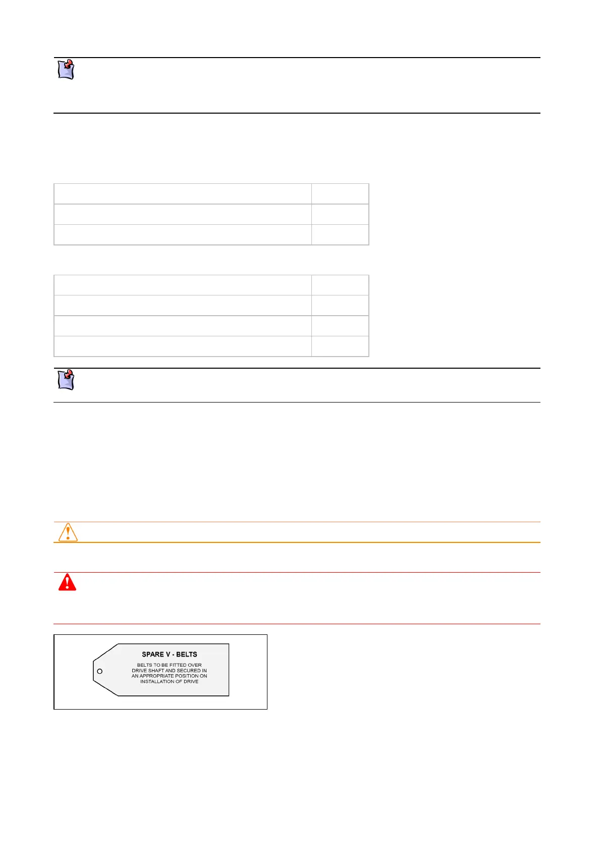 The coupling will have a set of spare V-belts and a label