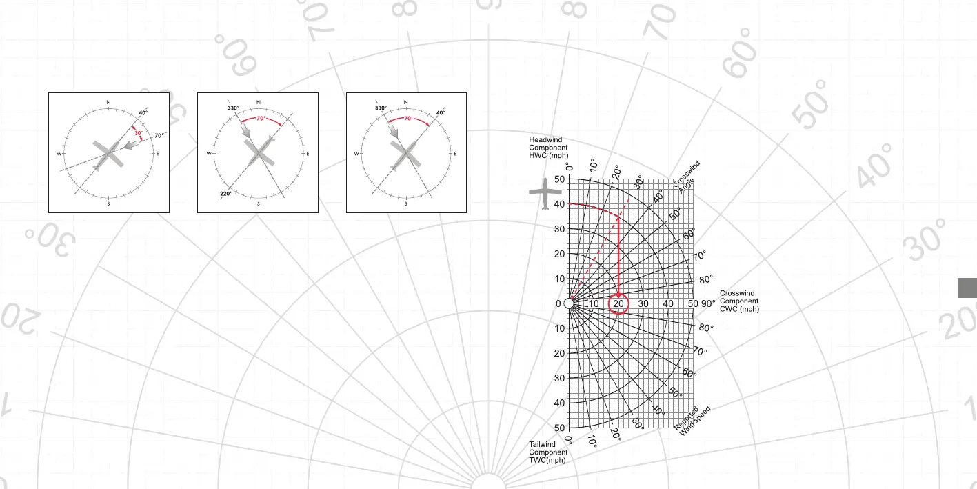 Угол бокового ветра: 70° - 40° = 30° (встречный ветер)