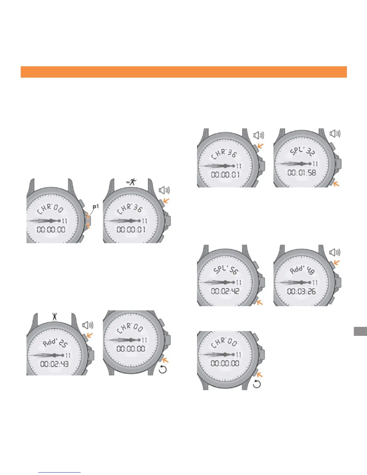 를 짧게 누르면 첫 번째 분할 시간
