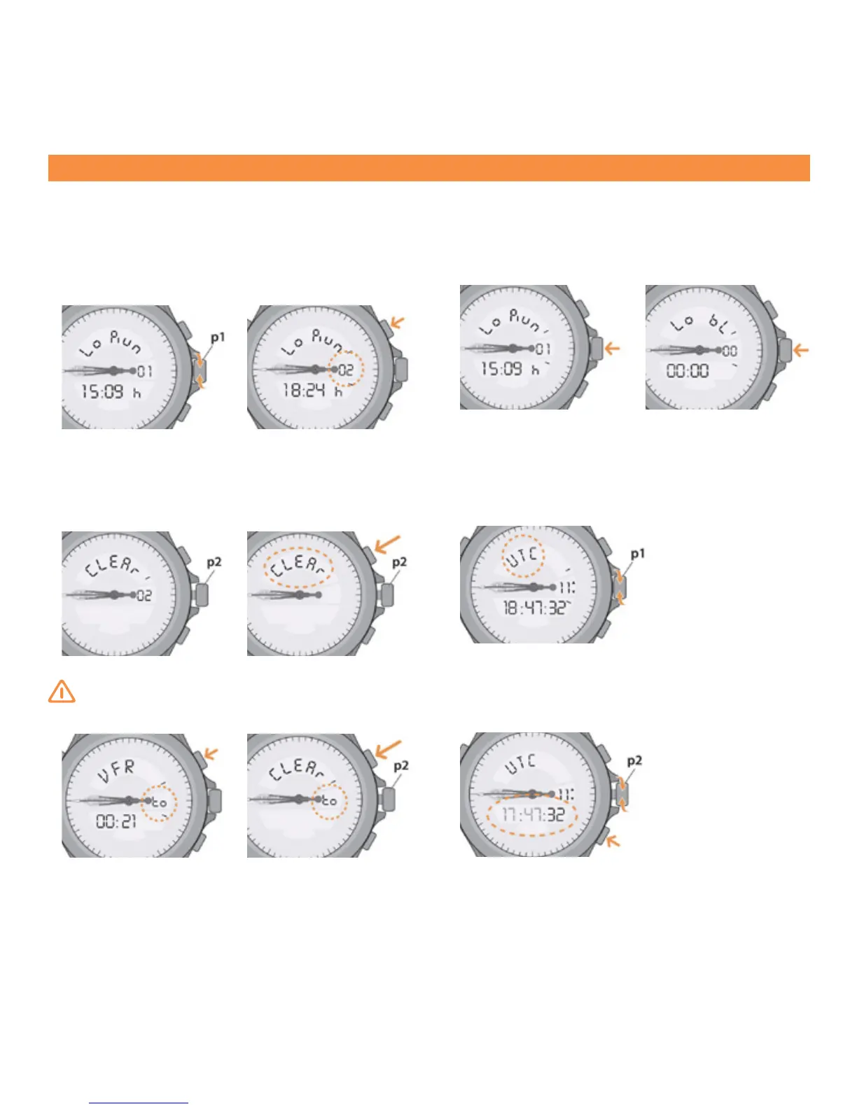 (p1) 위치에서 용두를 돌리면 "Lo Run"