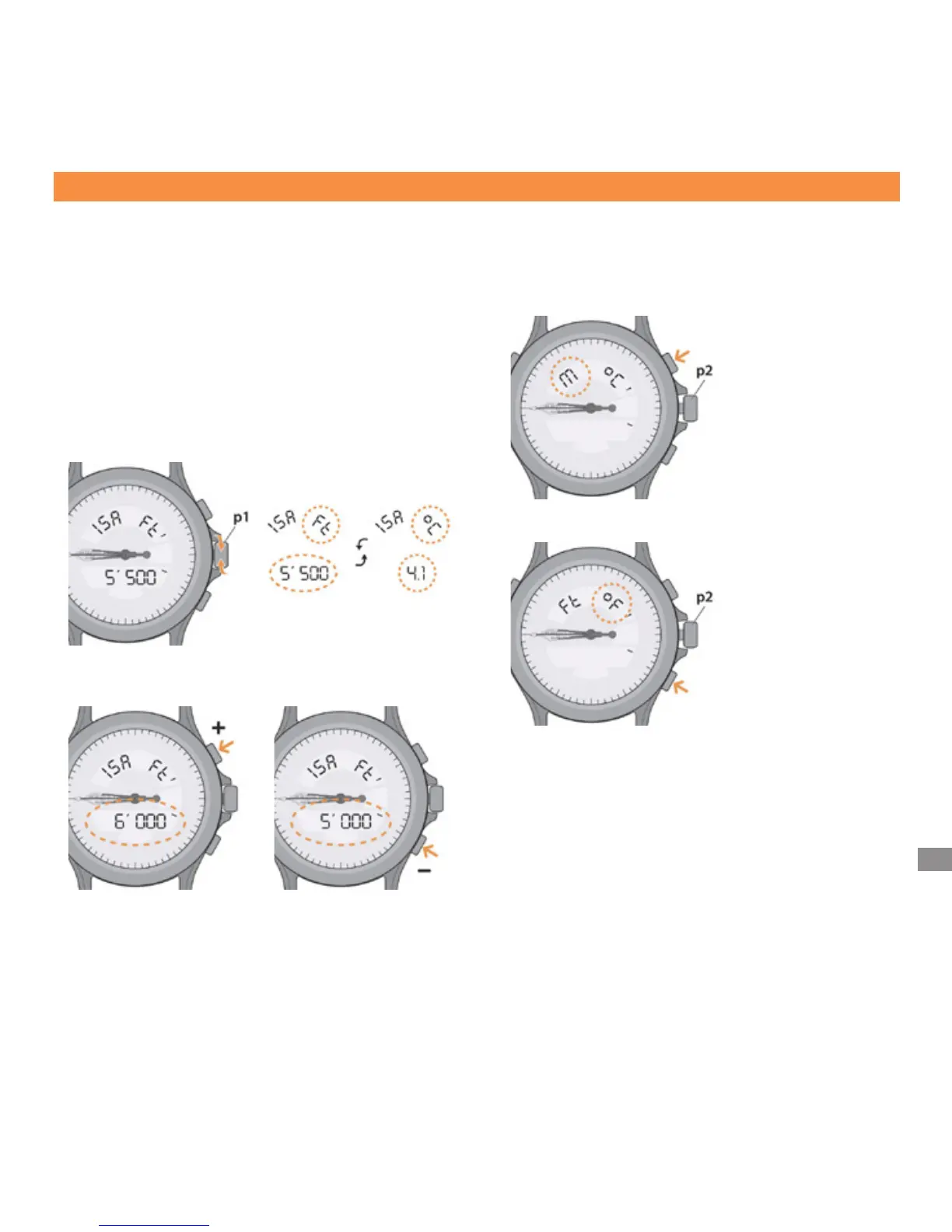 를 짧게 누르면 고도 단위가 바뀝니다.