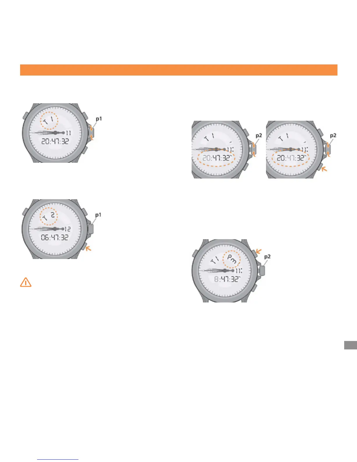 在位置 (p1) 转动表冠可调出“T1”显示。