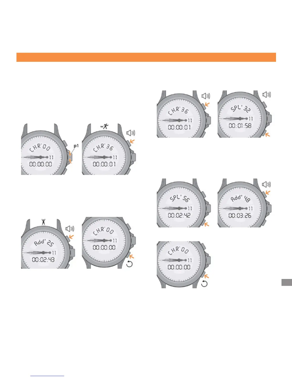 在位置 (p1) 转动表冠,调出“CHR’ 00”显示。