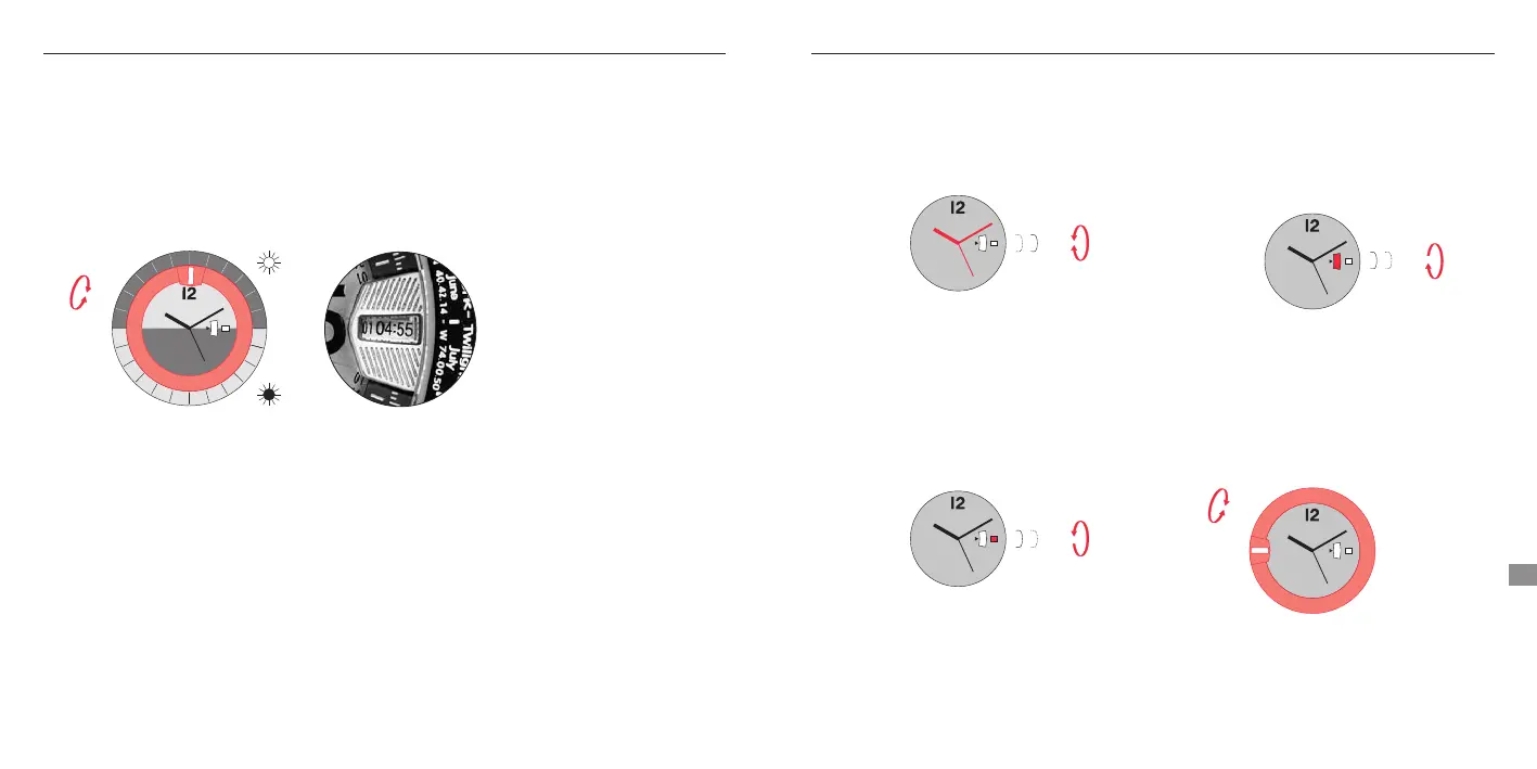 時間 (Twilight Start),轉動錶冠直至旋轉內圈的視窗與上半圈上想要的月份和日期對齊。
