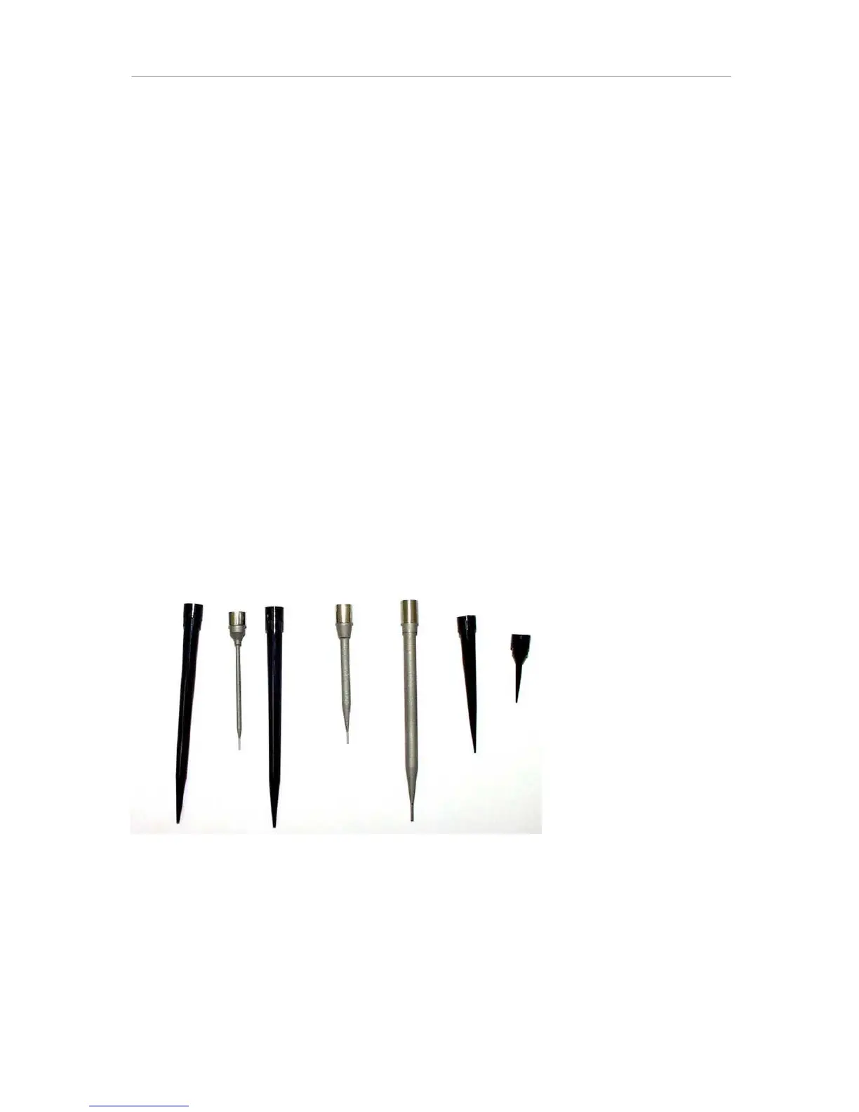 Reusable needles with 50, 300, and 1000 µl volumes may be used instead of tips. Only
